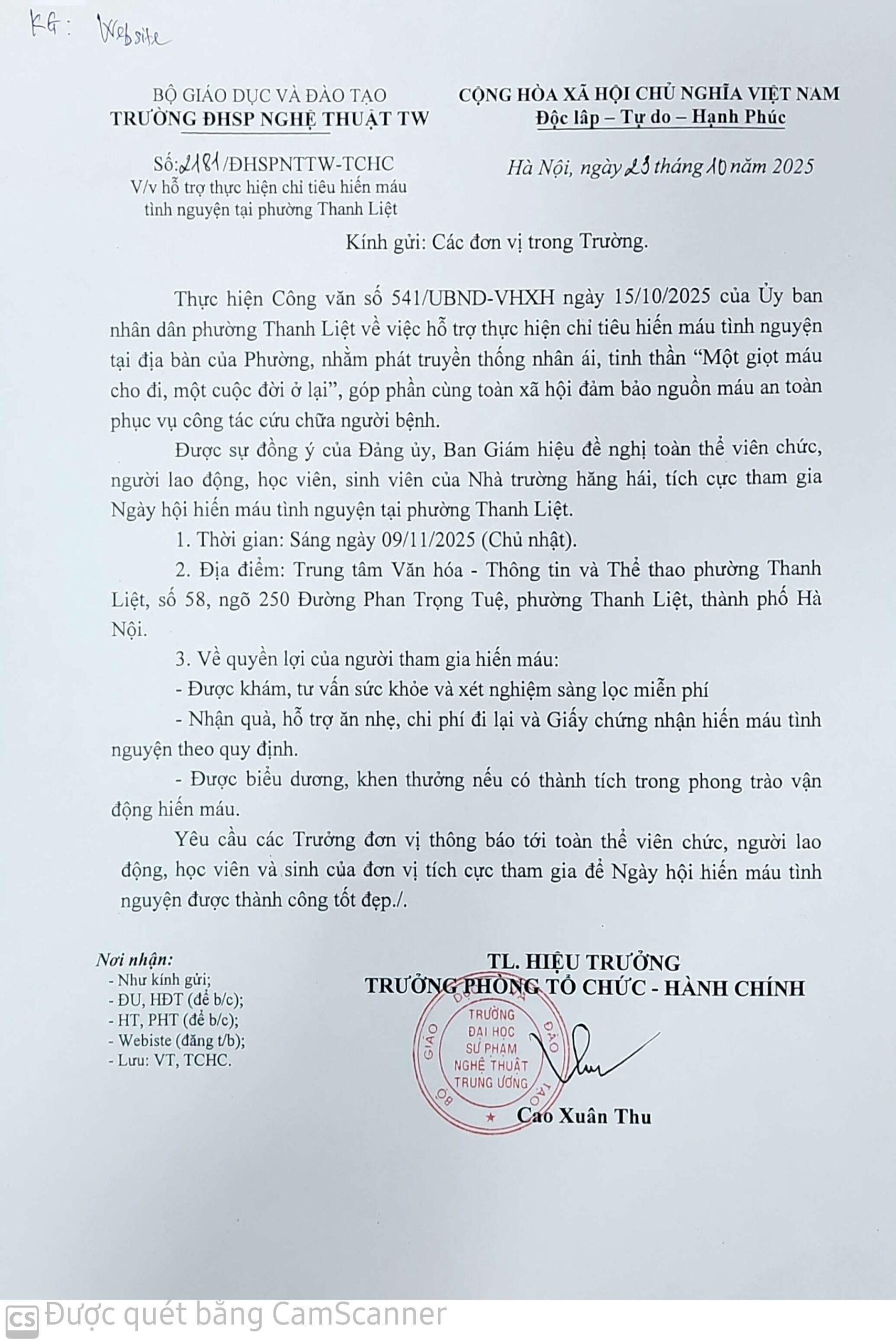 Công đoàn Trường Đại học Sư phạm Nghệ thuật Trung ương phát động phong trào ủng hộ đồng bào vùng bão lũ năm 2025