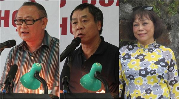 Từ trái sang: Nhà phê bình văn học Ngô Thảo, Nguyễn Hòa và PGS.TS Nguyễn Thị Minh Thái phát biểu tại Hội nghị Lý luận phê bình sáng 4/6. Ảnh: Mi Ly/ Phương Thúy.