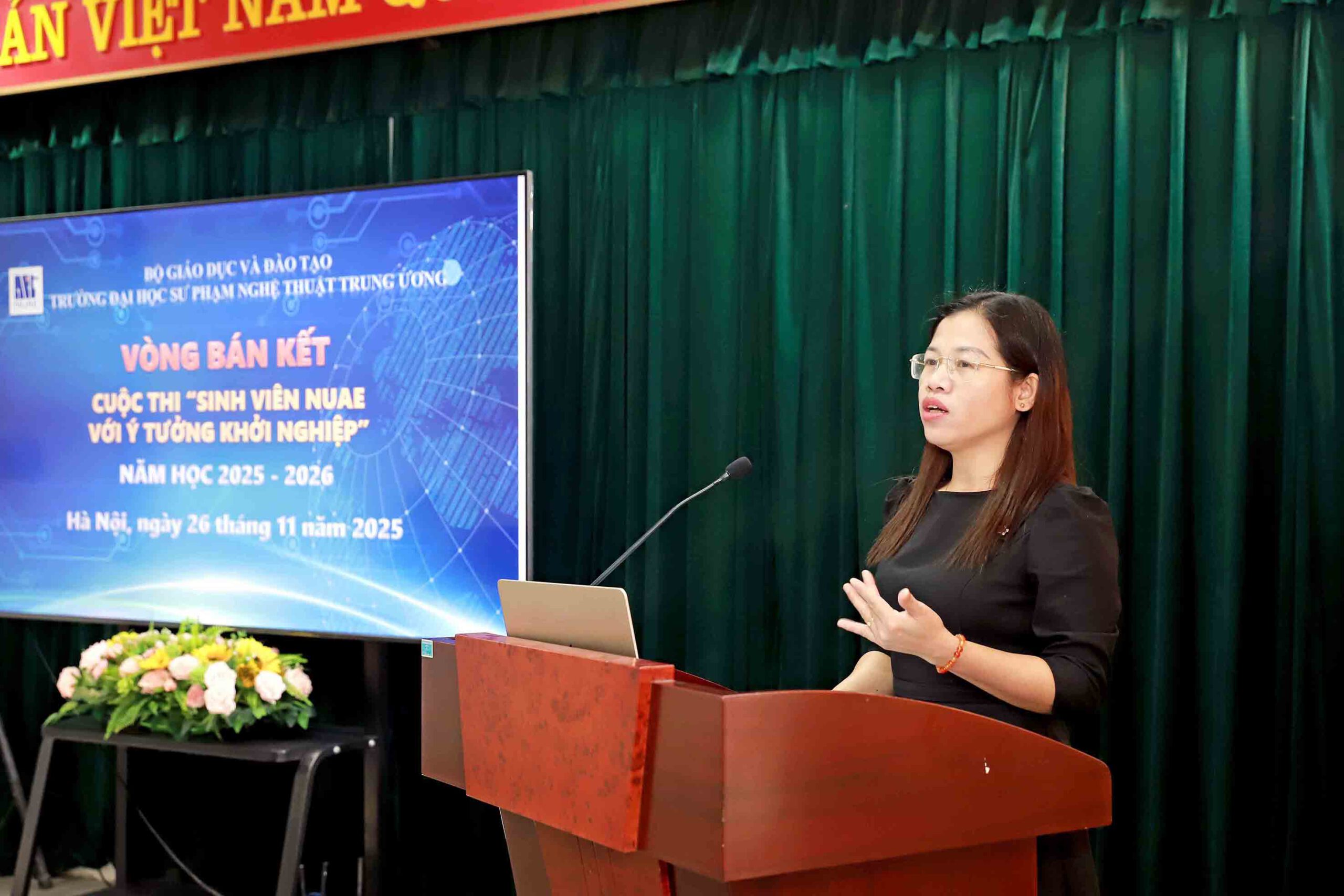 Sáng ngày 26/11/2025, Trường ĐHSP Nghệ thuật TW đã tổ chức Vòng Bán kết Cuộc thi “Sinh viên NUAE với ý tưởng khởi nghiệp” năm học 2025-2026. Sự kiện nhằm tạo sân chơi học thuật, khuyến khích tinh thần đổi mới sáng tạo, tư duy khởi nghiệp trong sinh viên NUAE, đồng thời tìm kiếm và ươm mầm những ý tưởng khởi nghiệp tiềm năng, có tính ứng dụng thực tiễn cao.