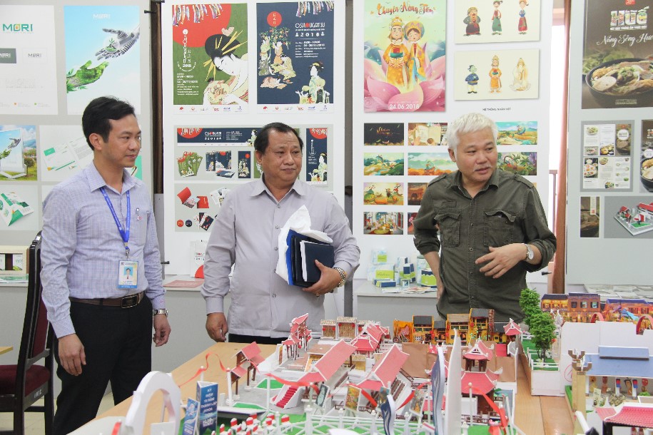 ThS. Nguyễn Duy Quốc Tuấn – Phó Trưởng khoa Thiết kế Đồ họa giới thiệu ngành học Thiết kế Đồ họa của NUAE với TS. Outhay Bannavong.