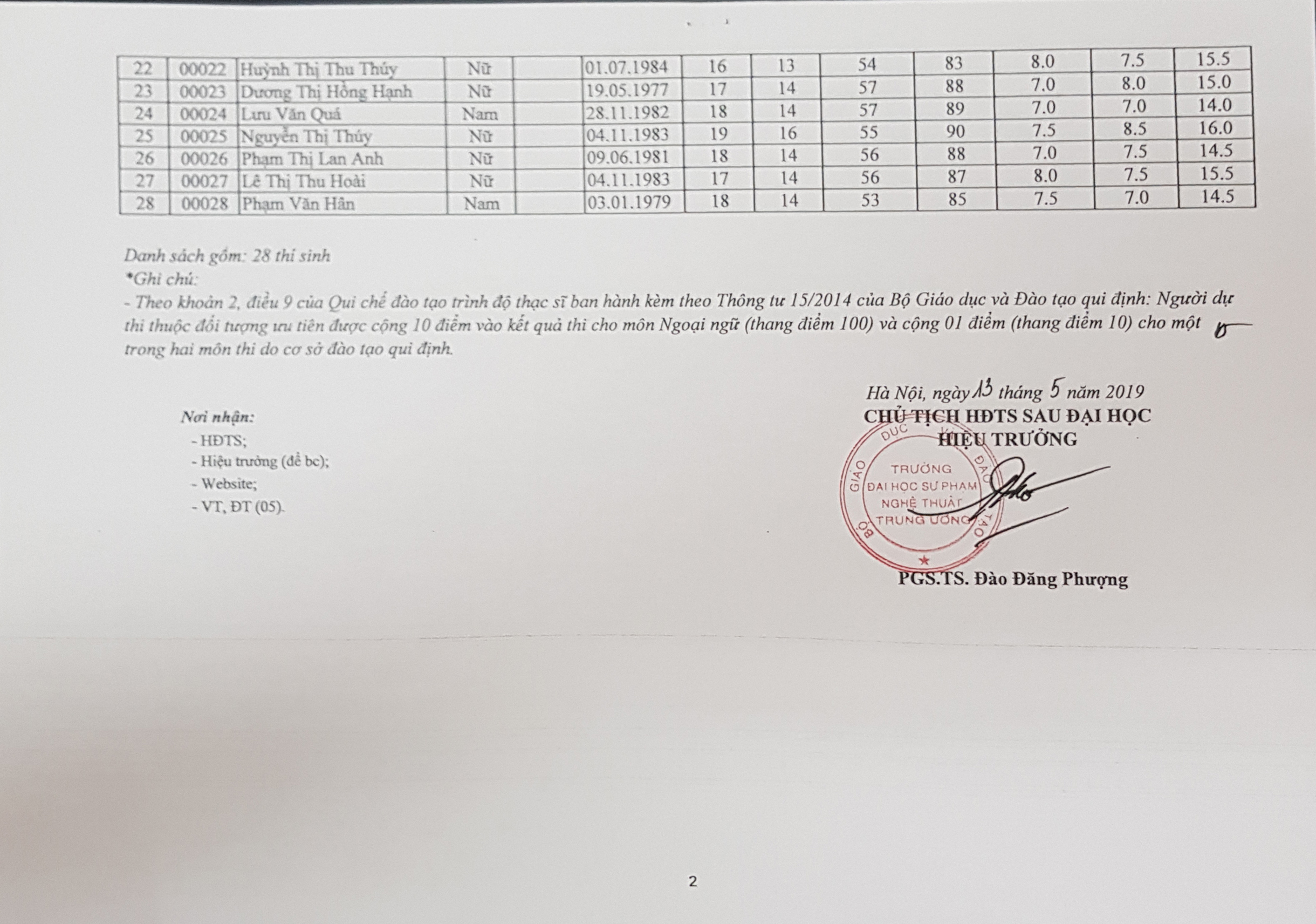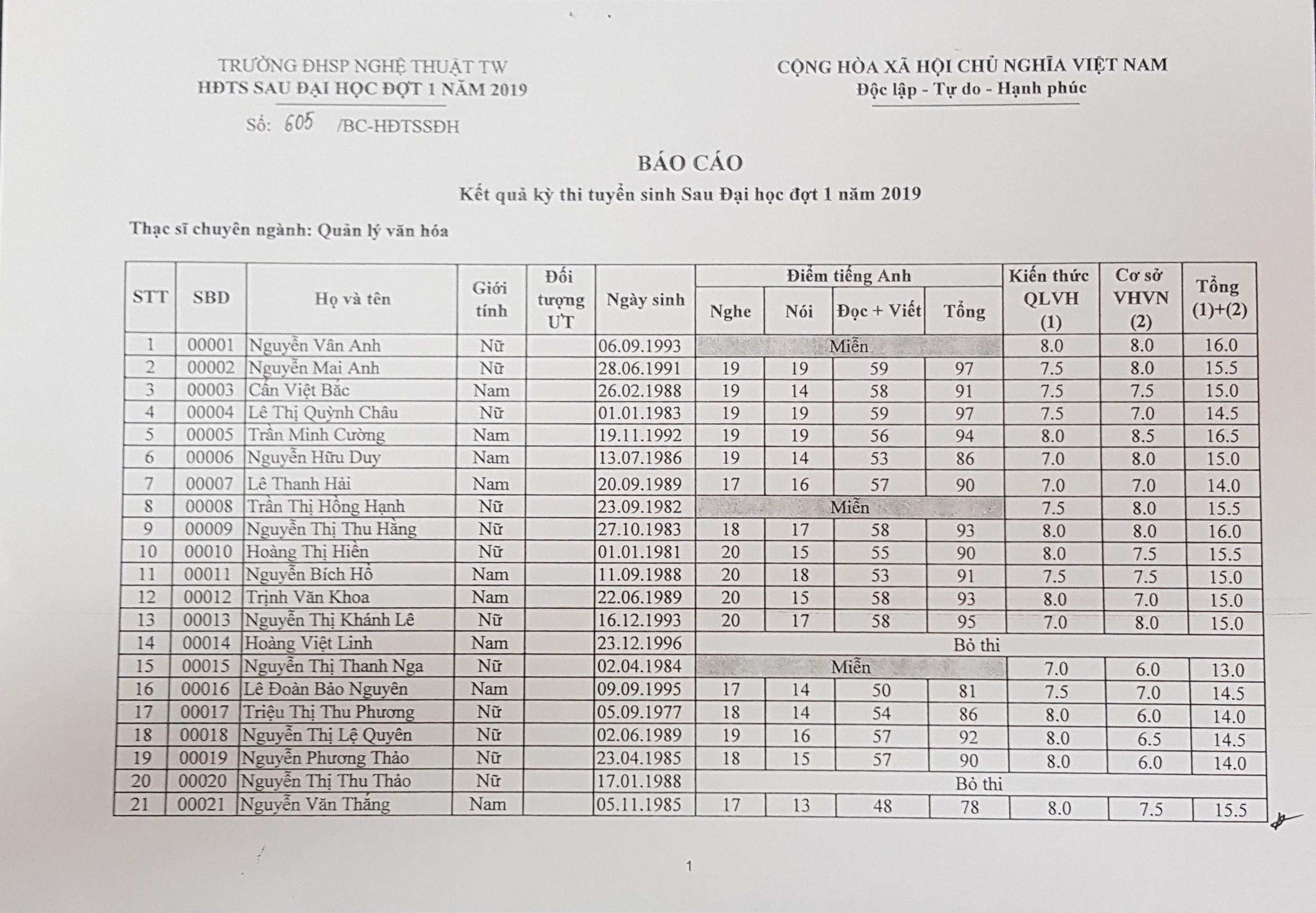 BÁO CÁO Kết quả kỳ thi tuyển sinh Sau Đại học đợt 1 năm 2019