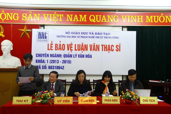 Ngày 08/12/2015, được sự đồng ý của Ban giám hiệu cùng Hội đồng thảo luận luận văn Trường ĐHSP Nghệ thuật TW, Khoa Sau Đại học đã tổ chức Lễ bảo vệ luận văn Thạc sĩ cho 02 học viên khóa I (2013 – 2015) chuyên ngành Quản lý văn hóa.