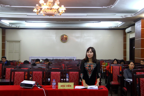 Học viên Nguyên Thị Nhung trình bày đề tài luận văn Thạc sĩ của mình