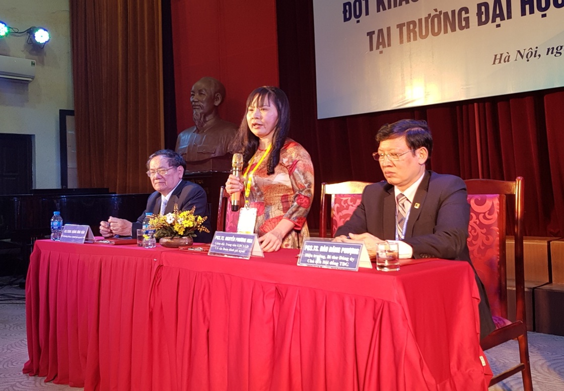 PGS.TS Nguyễn Phương Nga, Giám đốc Trung tâm Kiểm định chất lượng giáo dục thuộc Hiệp hội các trường đại học cao đẳng Việt Nam, cố vấn đoàn đánh giá ngoài phát biểu tại lễ bế mạc