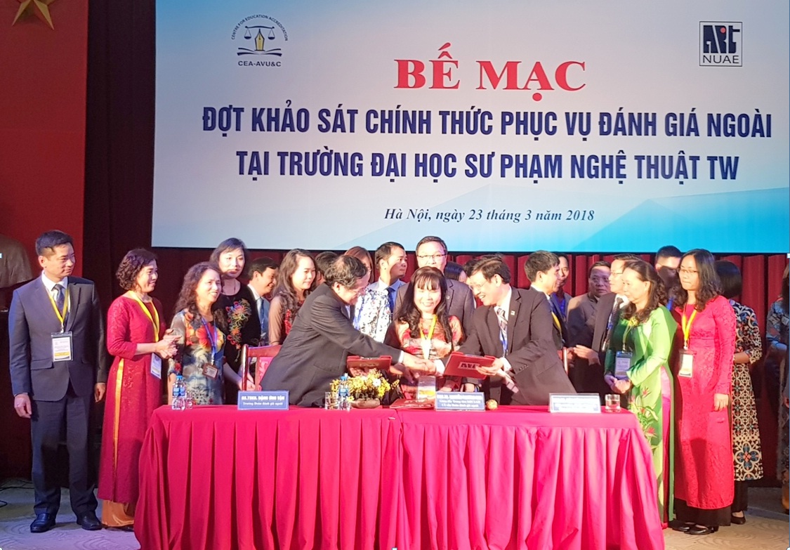 Chiều ngày 23 tháng 3 năm 2018, Trung tâm Kiểm định chất lượng giáo dục – Hiệp hội các trường đại học cao đẳng Việt Nam và Trường ĐHSP Nghệ thuật TW đã tổ chức bế mạc đợt khảo sát chính thức phục vụ đánh giá ngoài tại Trường theo Bộ tiêu chuẩn đánh giá chất lượng trường đại học của Bộ Giáo dục và Đào tạo.