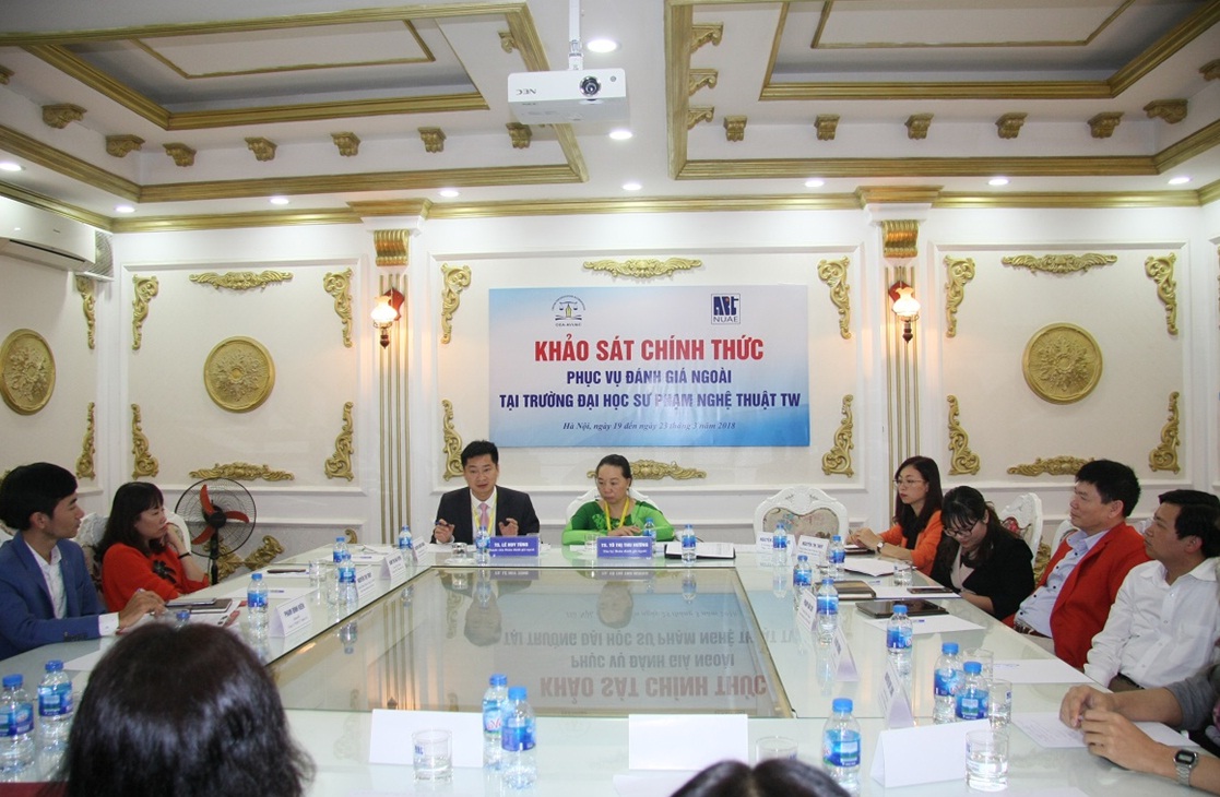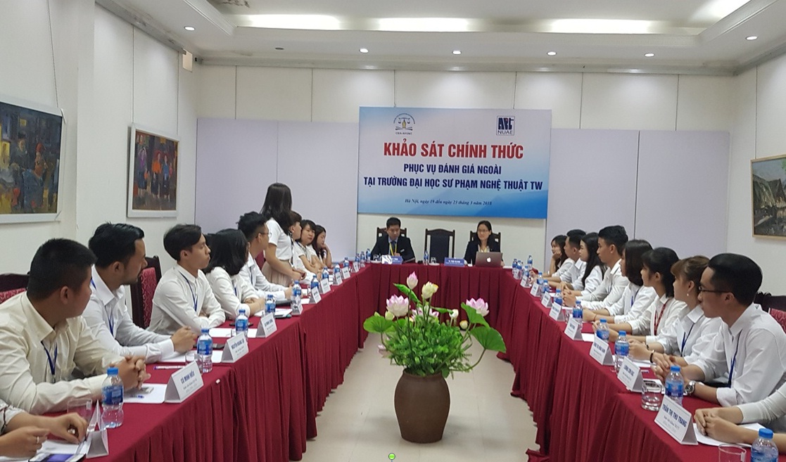 Chương trình đợt khảo sát chính thức tại Trường ĐHSP Nghệ thuật TW diễn ra từ ngày 19 đến 23 tháng 3 năm 2018. Đoàn chuyên gia đánh giá ngoài đã nghiên cứu hồ sơ minh chứng của 10 tiêu chuẩn, 61 tiêu chí, làm việc trực tiếp với các cán bộ phụ trách các mảng công tác của Nhà trường, phỏng vấn trực tiếp với các nhóm đối tượng khác nhau, tham quan và khảo sát các điều kiện cơ sở vật chất phục vụ các hoạt động của nhà trường… Đoàn chuyên gia cũng đã tiếp xúc, phỏng vấn cán bộ viên chức, giảng viên, học viên, sinh viên, cựu sinh viên và nhà tuyển dụng lao động để có những đánh giá khách quan, công tâm nhất.