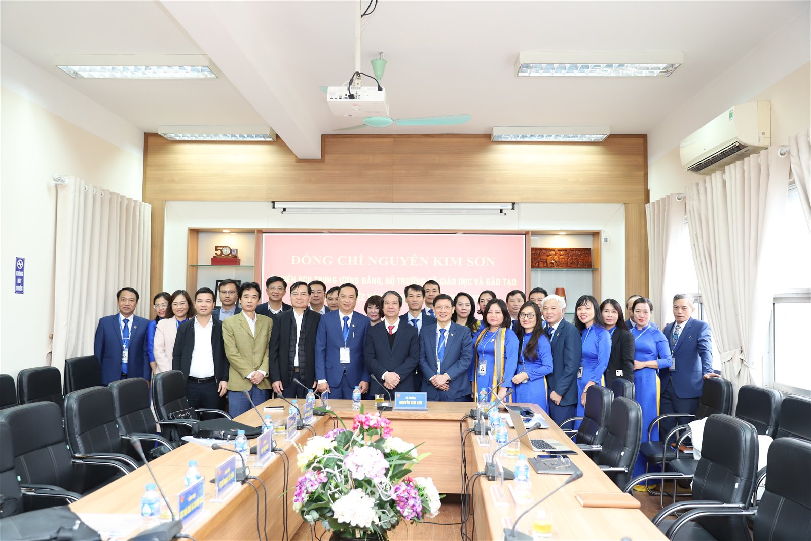 Đoàn công tác Bộ GD&ĐT chụp ảnh kỷ niệm cùng lãnh đạo Trường