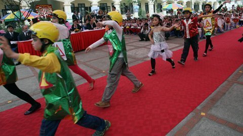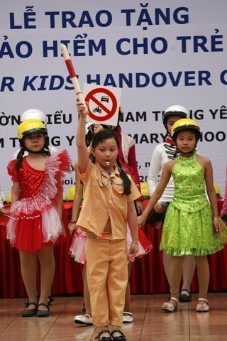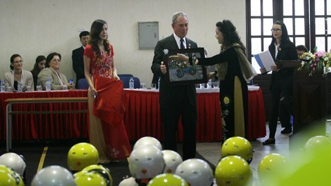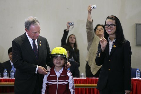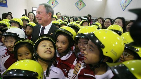 Với chương trình “Mũ bảo hiểm cho trẻ em”, Thị trưởng Bloomberg cùng đại diện WHO, các tổ chức, lãnh đạo ban, ngành Việt Nam trao tặng 1211 mũ bảo hiểm cho học sinh và thầy cô giáo trường tiểu học Nam Trung Yên.
