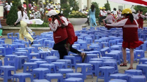 Cơn mưa, gió rét tràn về đột ngột khiến buổi lễ bị gián đoạn