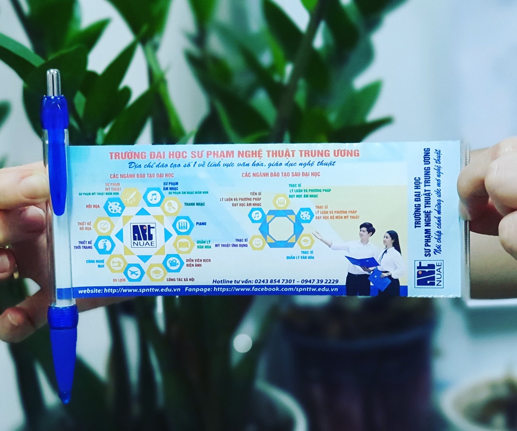 Thoạt nhìn, chiếc bút vẫn giản dị như bao chiếc bút bình thường khác, ngoại trừ logo và tên hiệu của Nhà trường được hiện lên trong thân bút. Điểm đặc biệt nằm ở công năng sử dụng của nó. Gọi là “thần kỳ” vì bút thay thế cho các tờ gấp, những thông tin tuyển sinh về nhà trường, từ việc giới thiệu về các ngành, chuyên ngành đào tạo, về các môn xét tuyển/thi tuyển…đều được lưu trữ trong thân bút. Chỉ việc kéo thanh kim loại trên thân bút ra và thế là… bao thông tin bổ ích sẽ được hiện ra trước mắt các bạn.