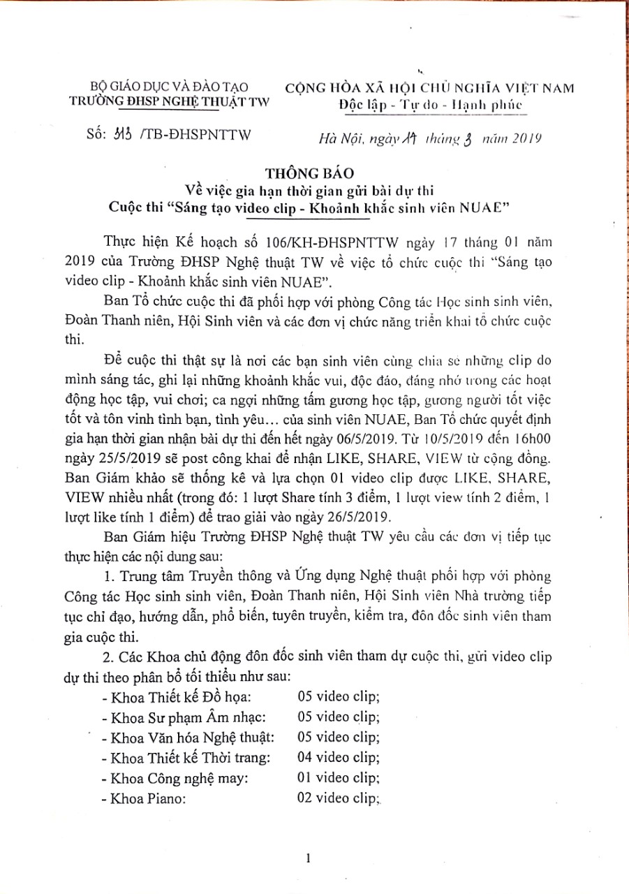 THÔNG BÁO Về việc gia hạn thời gian gửi bài dư thi Cuộc thi “Sáng tạo video clip – Khoảnh khắc sinh viên NUAE”