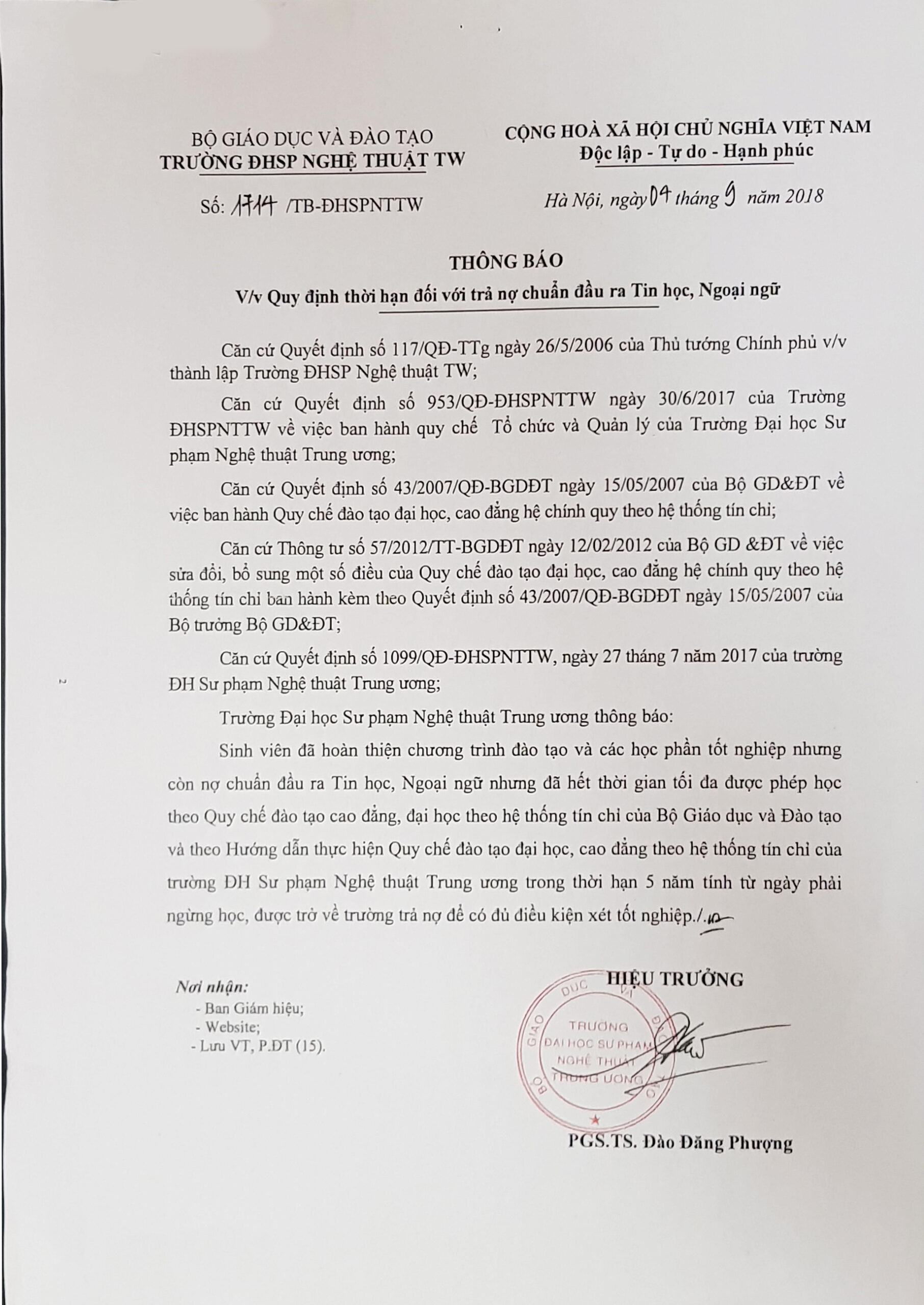 THÔNG BÁO Về việc Quy định thời hạn đối với trả nợ chuẩn đầu ra Tin học, Ngoại ngữ