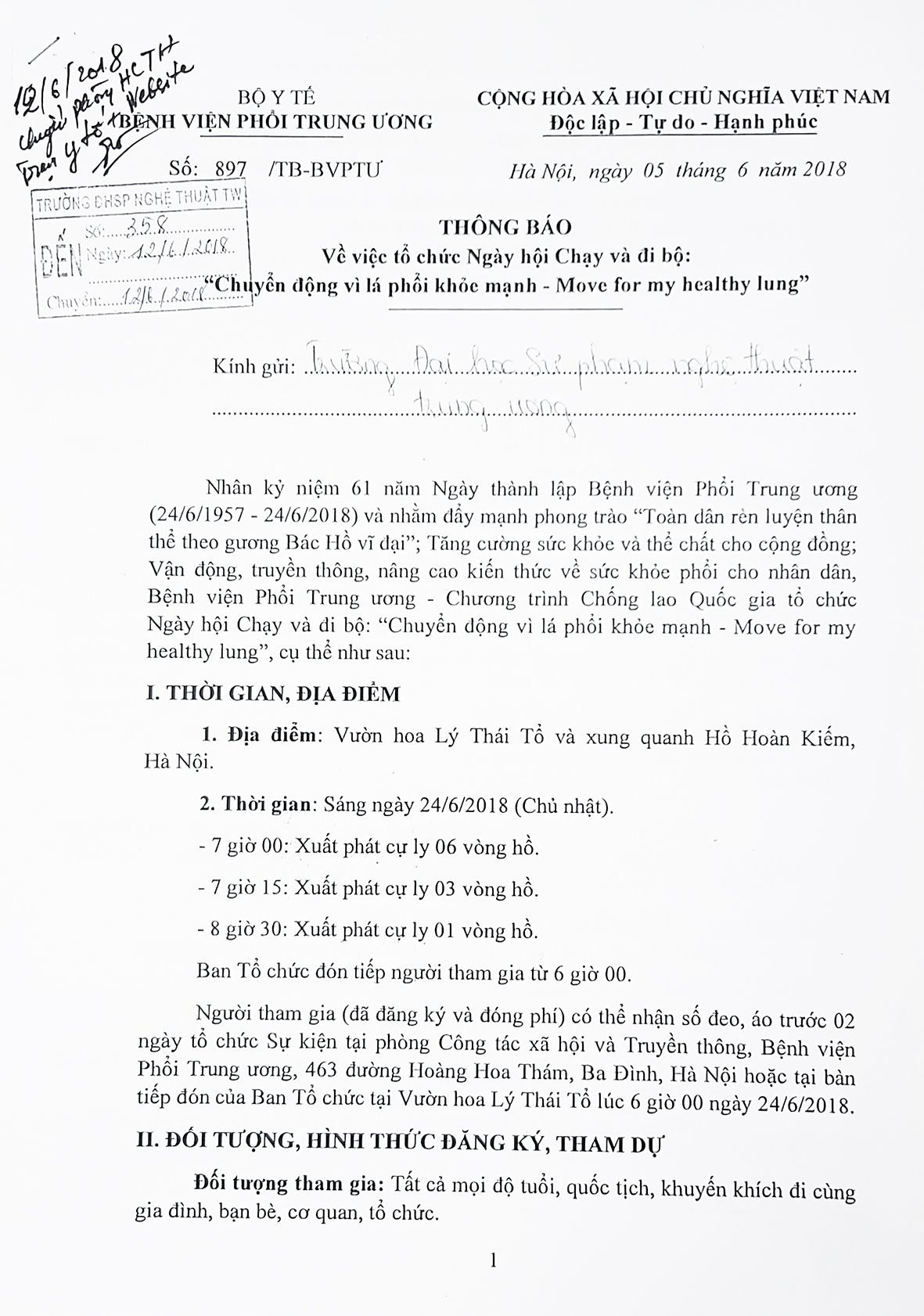THÔNG BÁO Về việc tổ chức Ngày hội Chạy và đi bộ: “Chuyển động vì lá phổi khỏe mạnh – Move for my healthy lung”