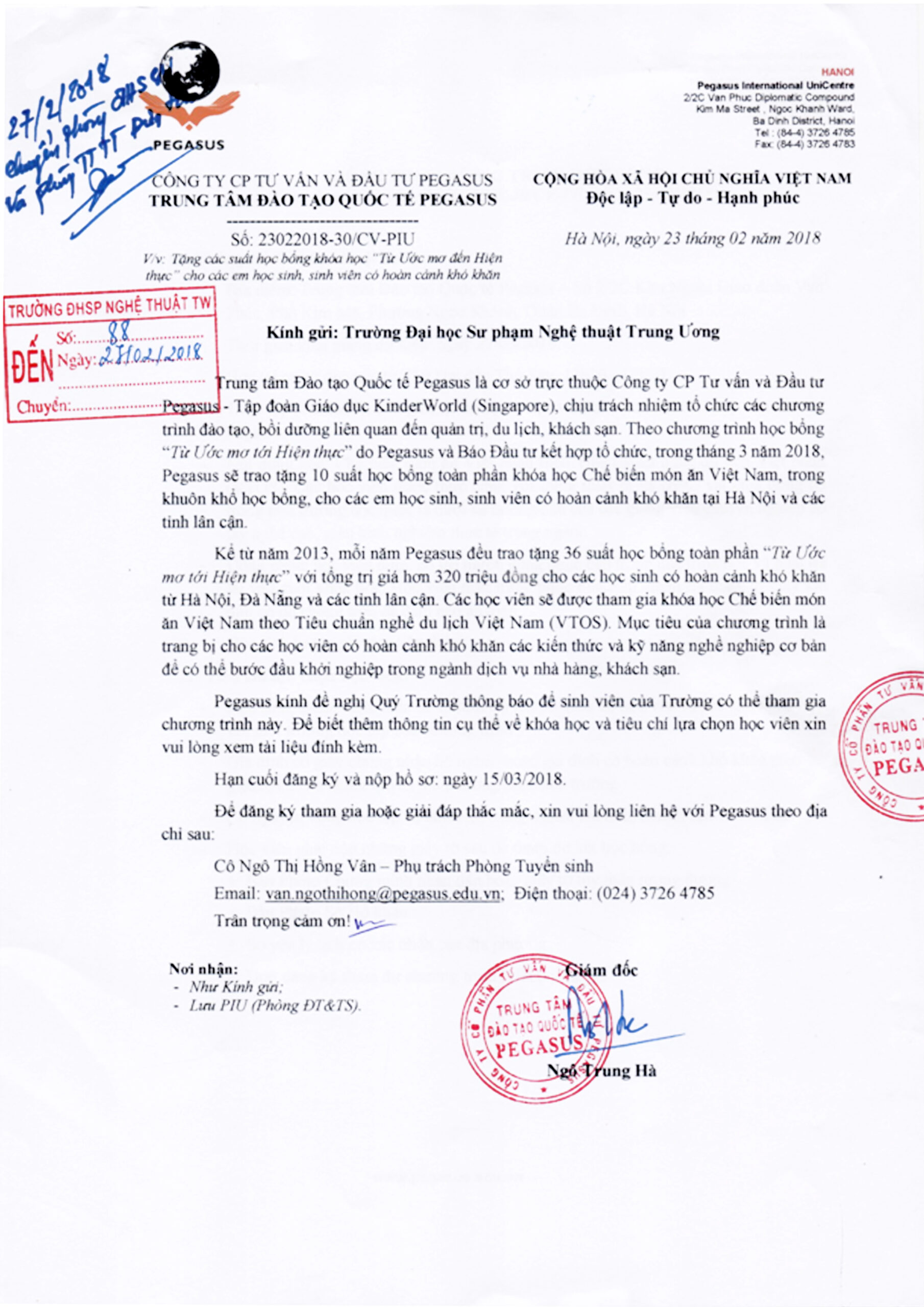 Trung tâm Đào tạo Quốc tế PEGASUS Tặng các suất học bổng khóa học “Từ Ước mơ đến Hiện thực” cho các em học sinh, sinh viên có hoàn cảnh khó khăn