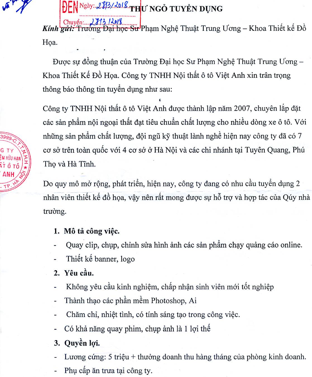 Thông báo tuyển dụng nhân viên thiết kế đồ họa