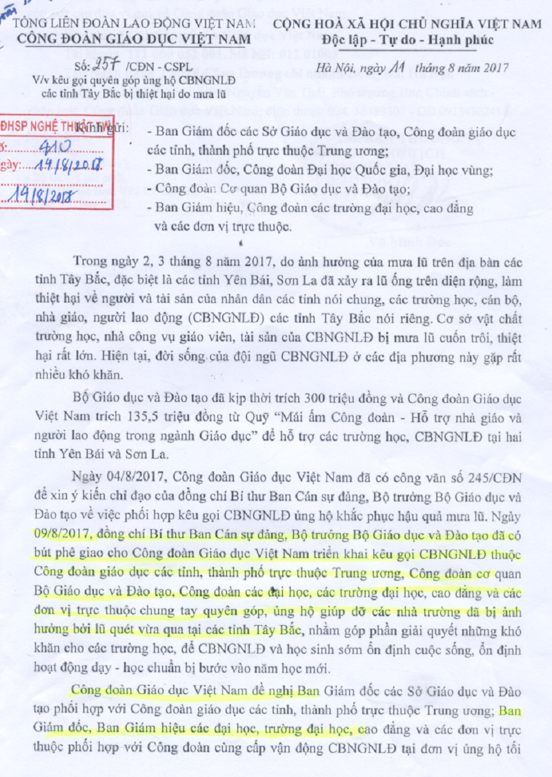 Kêu gọi quyên góp ủng hộ CBNGNLĐ các tỉnh Tây Bắc bị thiệt hại do mưa lũ