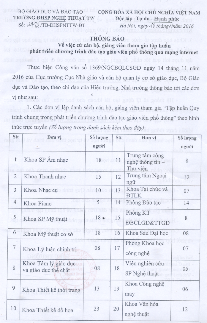 Thông báo về việc cử cán bộ, giảng viên tham gia tập huấn phát triển chương trình đào tạo giáo viên phổ thông qua mạng internet