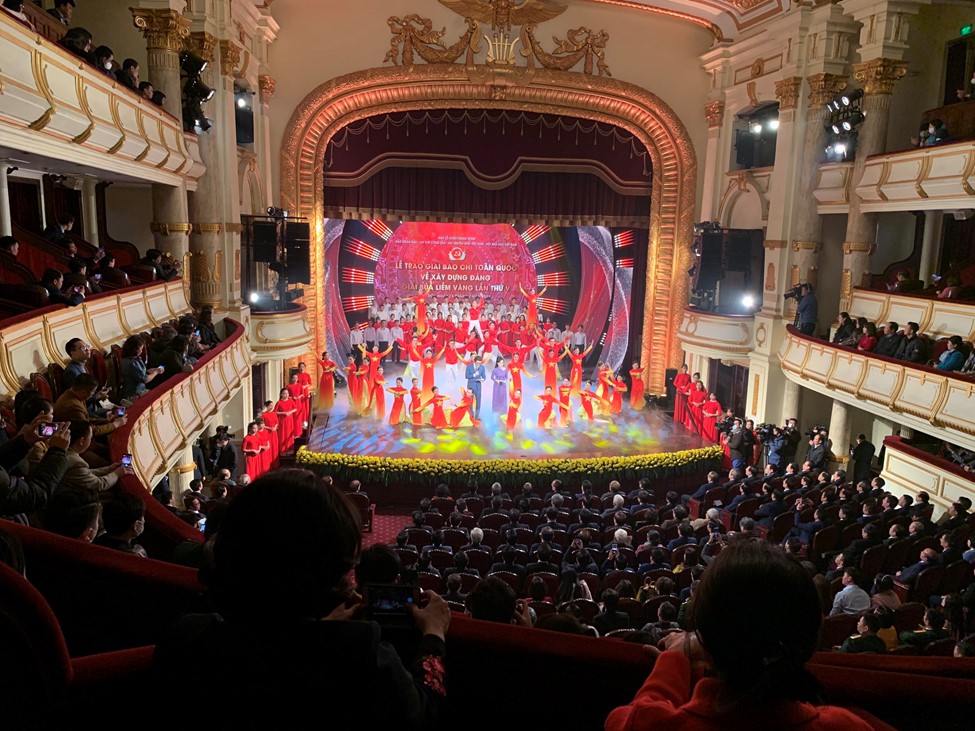 Sinh viên NUAE biểu diễn chào mừng tại Lễ công bố và trao Giải báo chí toàn quốc về xây dựng Đảng (Giải Búa liềm vàng), lần thứ 5 – năm 2020