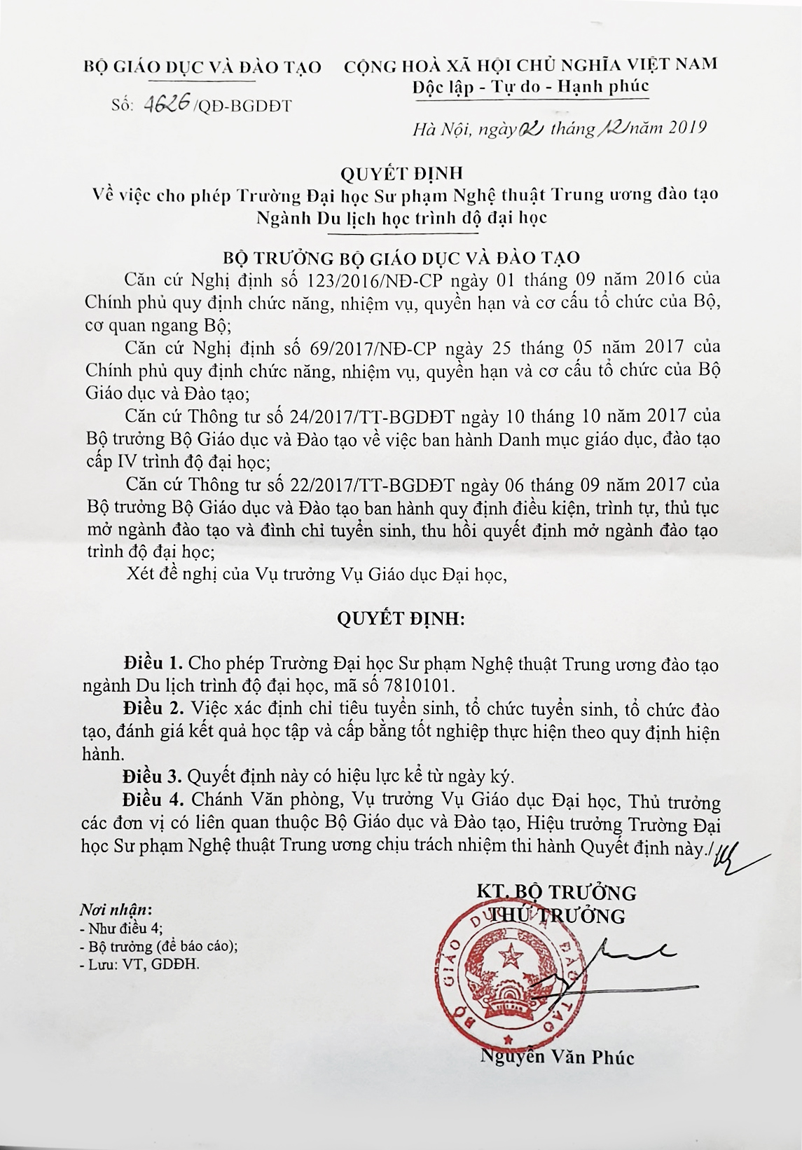 Trường ĐHSP Nghệ thuật TW đào tạo Đại học ngành Du lịch