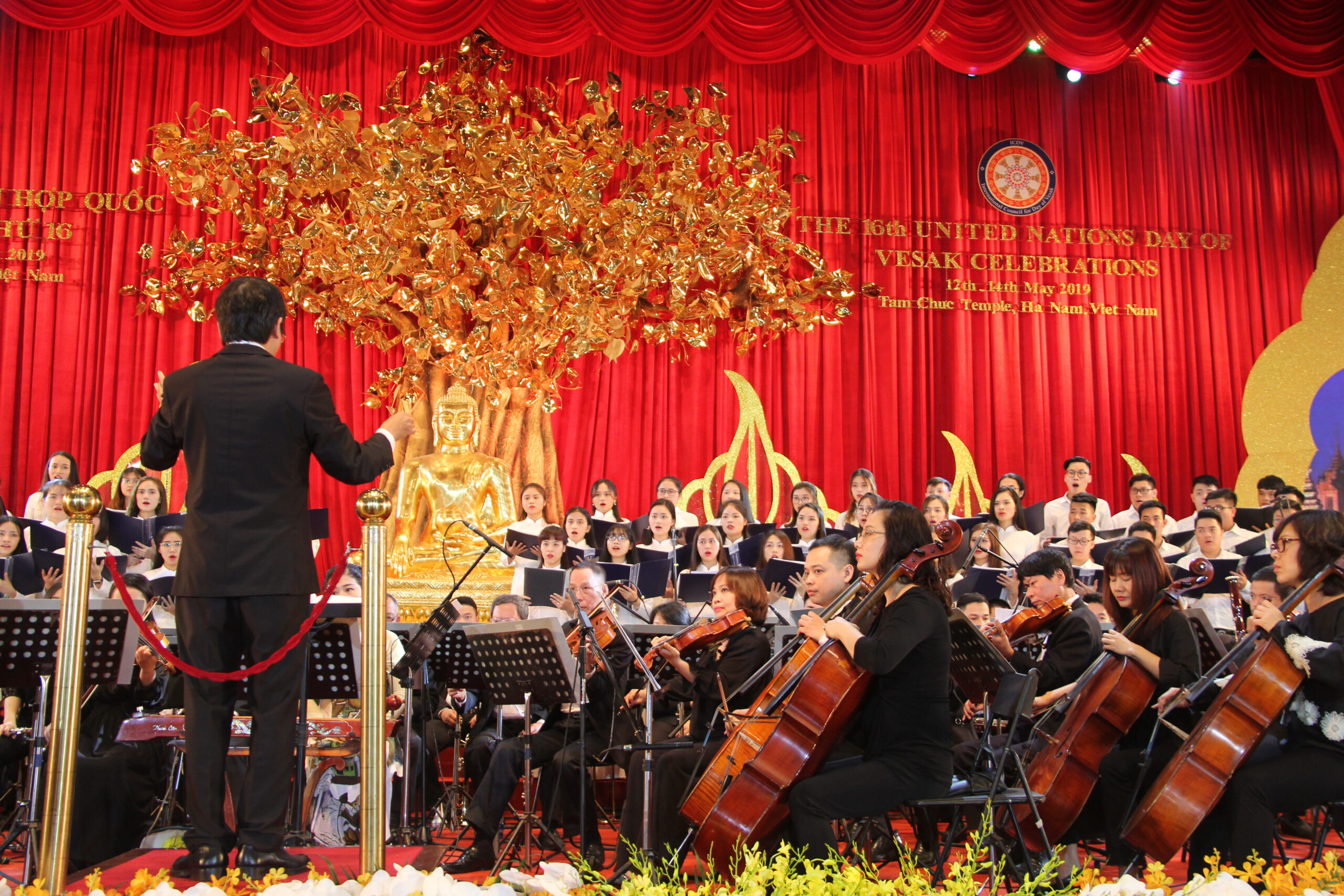 Đội hợp xướng Trường ĐHSP Nghệ thuật TW biểu diễn cùng với các nhạc công, ca sĩ nổi tiếng tại Đại lễ Phật đản Liên Hợp Quốc – Vesak lần thứ 16, năm 2019