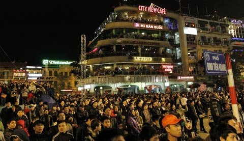 Hàng ngàn người dân đã về quanh hồ Gươm chờ đón khoảng khắc giao thừa