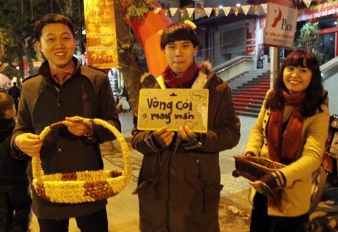 Những bạn trẻ bán vòng cói may mắn trong đêm giao thừa