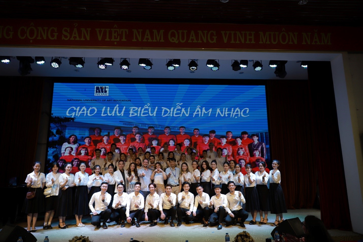 Phát biểu khai mạc chương trình, PGS.TS. Đào Đăng Phượng – Bí thư Đảng ủy, Hiệu trưởng Nhà trường bày tỏ sự vui mừng khi được đón tiếp các nghệ sĩ trong buổi giao lưu âm nhạc này. Hiệu trưởng là một buổi kết nối, tiếp cận, giao lưu, trao đổi văn hóa nghệ thuật có ý nghĩa thiết thực đối với cán bộ, giảng viên, học viên và sinh viên Trường ĐH Sư phạm Nghệ thuật TW. Đồng thời, thể hiện mong muốn gắn kết, hợp tác giữa hai quốc gia Việt Nam – Hoa Kỳ về văn hóa nghệ thuật.