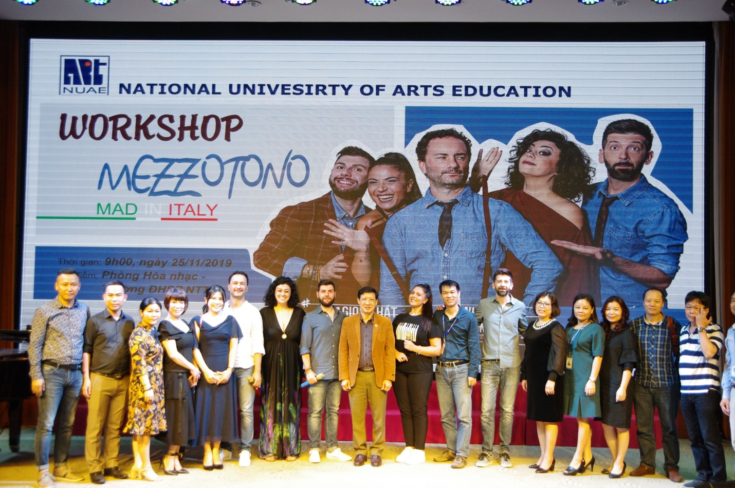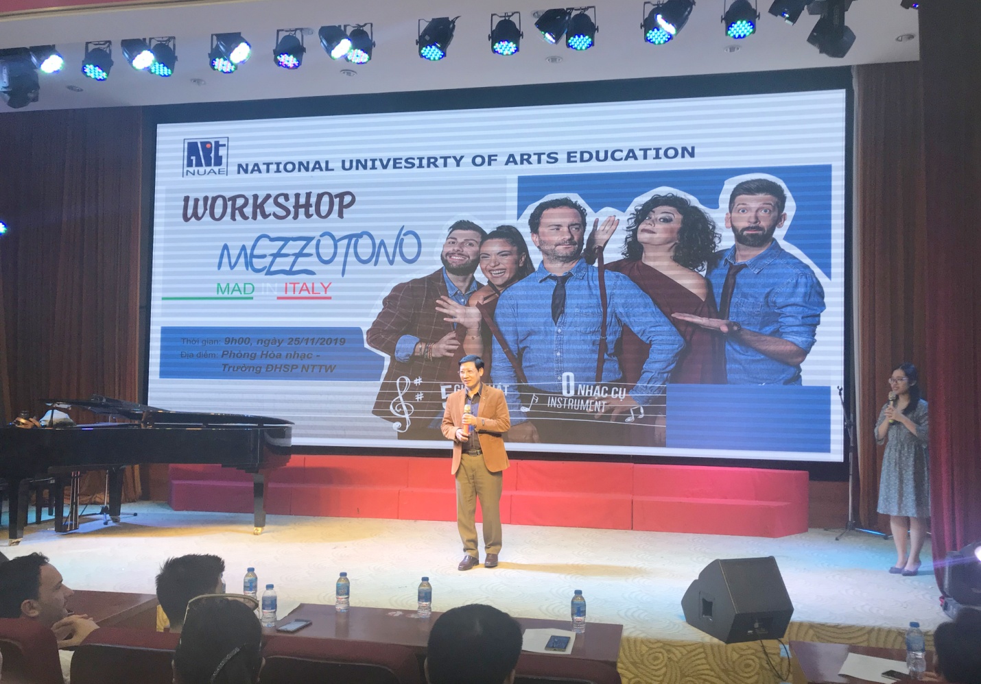 Phát biểu khai mạc chương trình, PGS.TS. Đào Đăng Phượng – Bí thư Đảng ủy, Hiệu trưởng Nhà trường bày tỏ sự vui mừng khi được đón tiếp các nghệ sĩ trong buổi giao lưu âm nhạc này. Phó giáo sư cũng cho biết, Nhà trường luôn chú trọng đến việc mở rộng quan hệ hợp tác với các đối tác nước ngoài, đặc biệt là với các nghệ sĩ đến từ Italia, đồng thời gửi lời cảm ơn sâu sắc đến Đại sứ quán Italia và ban nhạc Mezzotono đã mang đến một chương trình giao lưu âm nhạc hứa hẹn nhiều thú vị. Với chương trình này, các nghệ sĩ của hai bên sẽ có những màn trình diễn âm nhạc đầy sôi động và ấn tượng, mang đậm màu sắc văn hóa, đây thực sự sẽ là dịp đầy ý nghĩa để hai nước Việt Nam – Ý hiểu và gắn kết với nhau hơn.