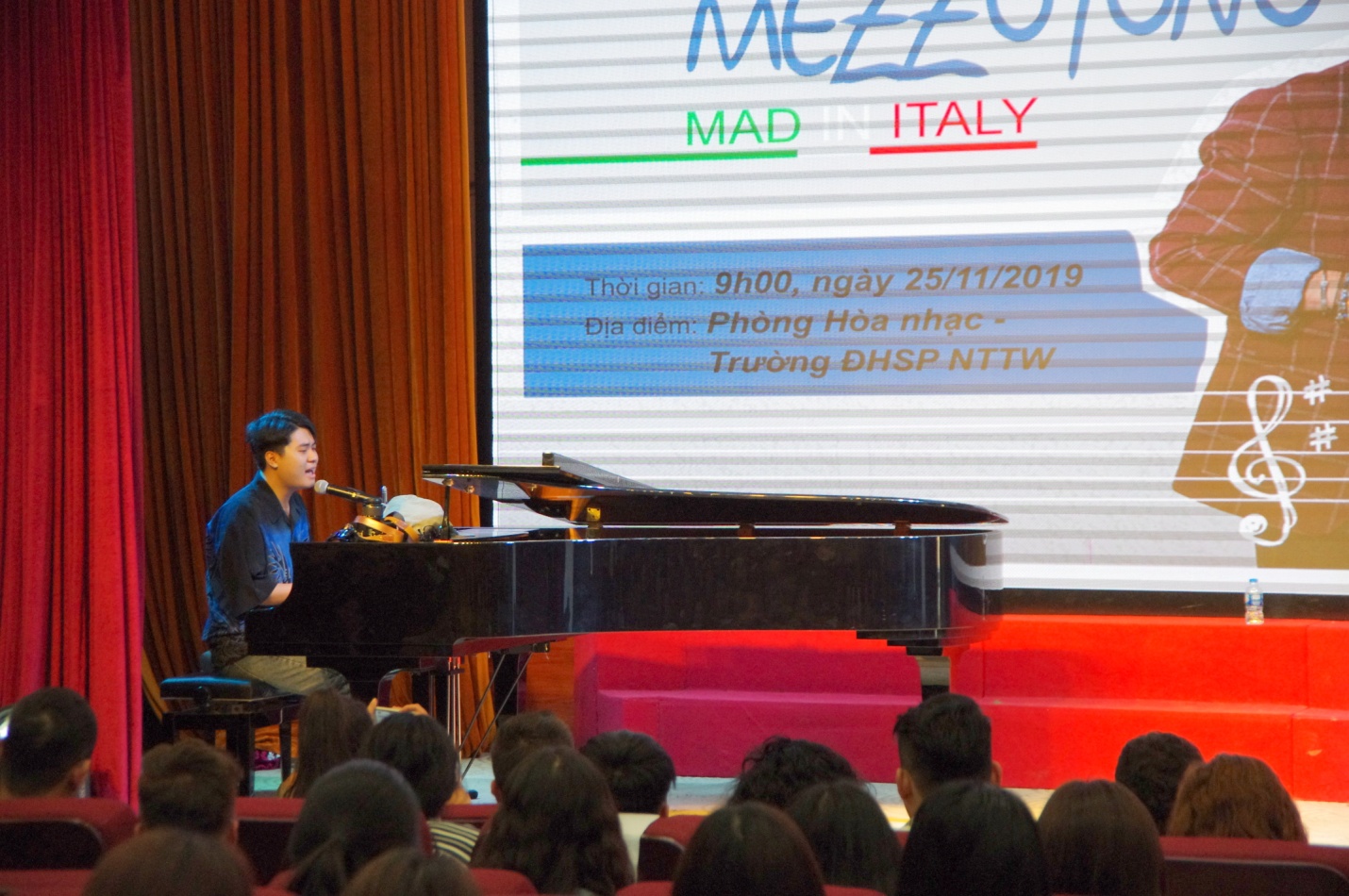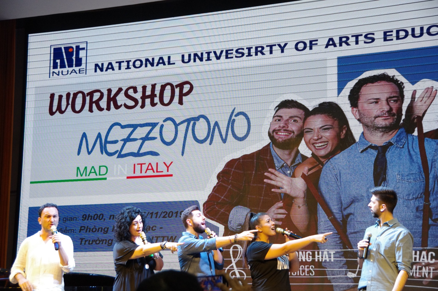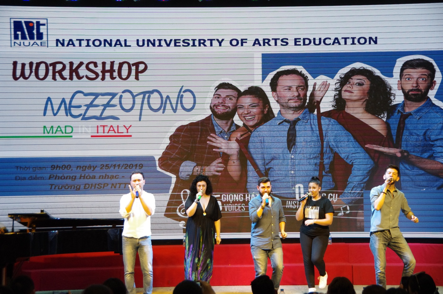 Đến với khán giả Trường ĐHSP Nghệ thuật TW, Ban nhạc Mezzotono đã trình diễn những bản nhạc mang đậm chất Ý bằng phong cách acapella từ giọng hát của 5 thành viên. Dù mang những sắc thái âm nhạc khác nhau nhưng họ đều trình diễn hoàn toàn với kỹ thuật Acapella, nghĩa là tạo ra thanh và nhạc mà không sử dụng bất kỳ nhạc cụ nào, nói cách khác, chính giọng hát sẽ biểu đạt âm thanh của các nhạc cụ.