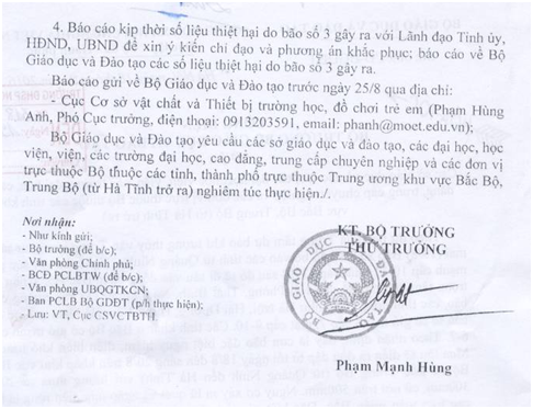 Công điện Bộ trưởng Bộ giáo dục và đào tạo số 589/CĐ-BGDĐT (hỏa tốc)