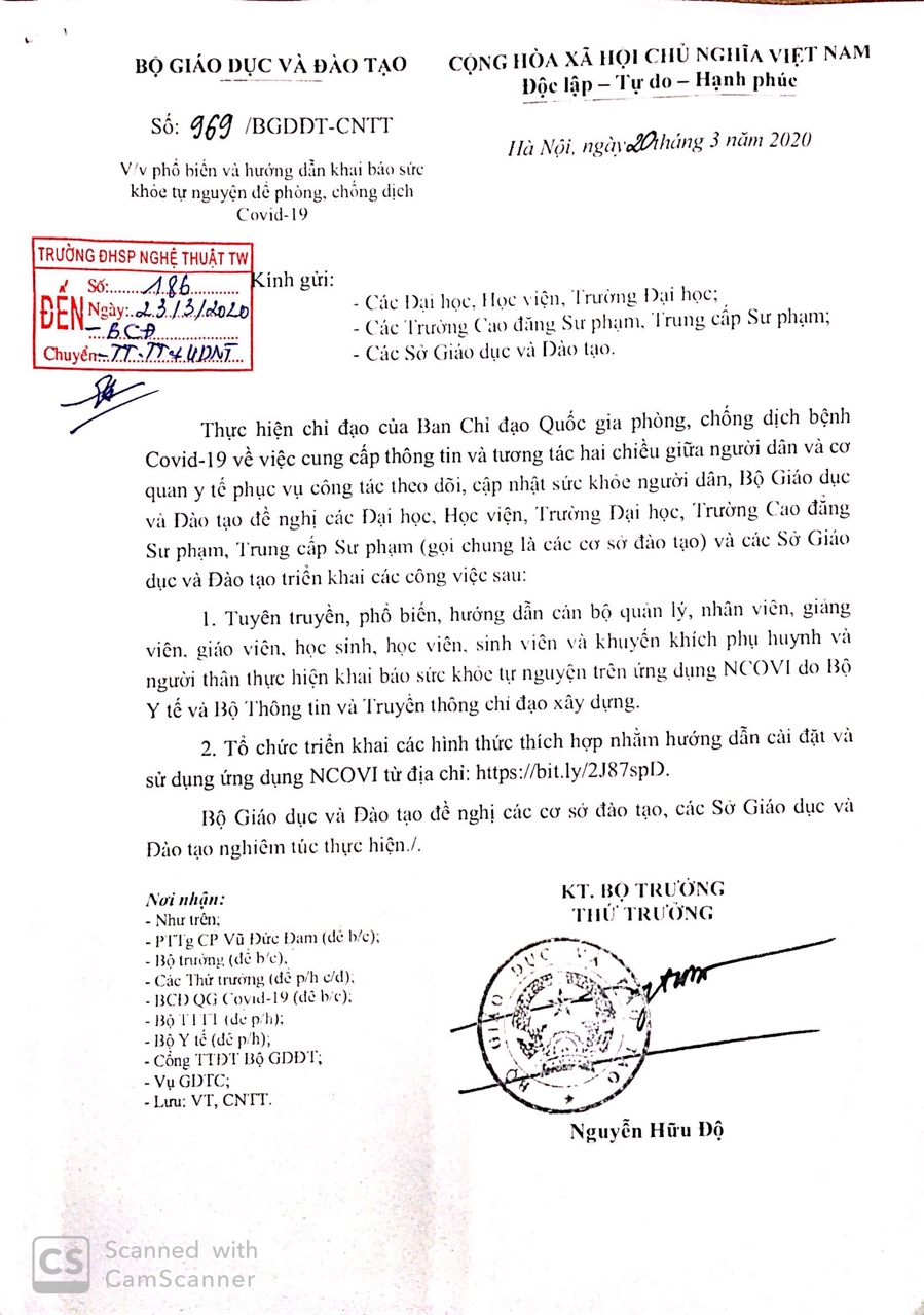 Công văn số 969/BGDĐT-CNTT ngày 20/03/2020 của Bộ Giáo dục và Đào tạo về việc phổ biến và hướng dẫn khai báo sức khỏe tự nguyện phòng, chống Covid -19