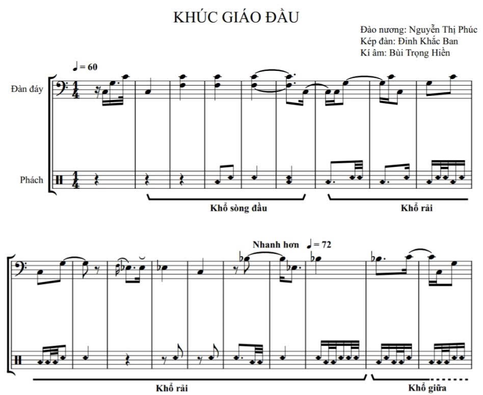 Kiểu 2: Khúc giáo đầu (dạo đàn và phách) =>Vào bài (nhịp độ khoan thai, ổn định xuyên suốt thể cách) và => Kết bài (nhịp điệu chậm). Gồm các bài như: Bắc phản, Gửi thư, Hát phú…