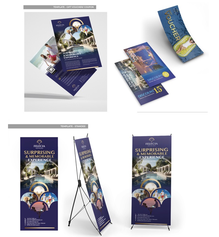 Một yếu tố quan trọng để bộ nhận diện thương hiệu Felecia thành công chính là sự đồng bộ và linh hoạt trong các ứng dụng trên nhiều nền tảng. Bộ nhận diện không chỉ cần đồng bộ trên các nền tảng truyền thống như văn phòng phẩm, biển hiệu mà còn phải có khả năng ứng dụng linh hoạt trên các nền tảng số, từ website đến các ứng dụng di động. Điều này giúp khách sạn duy trì một hình ảnh thương hiệu nhất quán, dễ dàng tiếp cận từ mọi kênh truyền thông.
