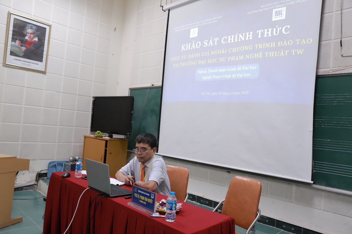Nằm trong khuôn khổ đợt khảo sát chính thức phục vụ đánh giá ngoài 05 chương trình đào tạo ngành Quản lý Văn hóa, Thiết kế Thời trang, Thanh nhạc, Piano trình độ đại học và Quản lý Văn hóa trình độ thạc sỹ của Trường ĐHSP Nghệ thuật TW, ngày 29/9/2025, Đoàn đánh giá ngoài (ĐGN) của Trung tâm Kiểm định chất lượng giáo dục thuộc Hiệp hội các trường đại học, cao đẳng Việt Nam thực hiện phỏng vấn các nhóm đối tượng liên quan.