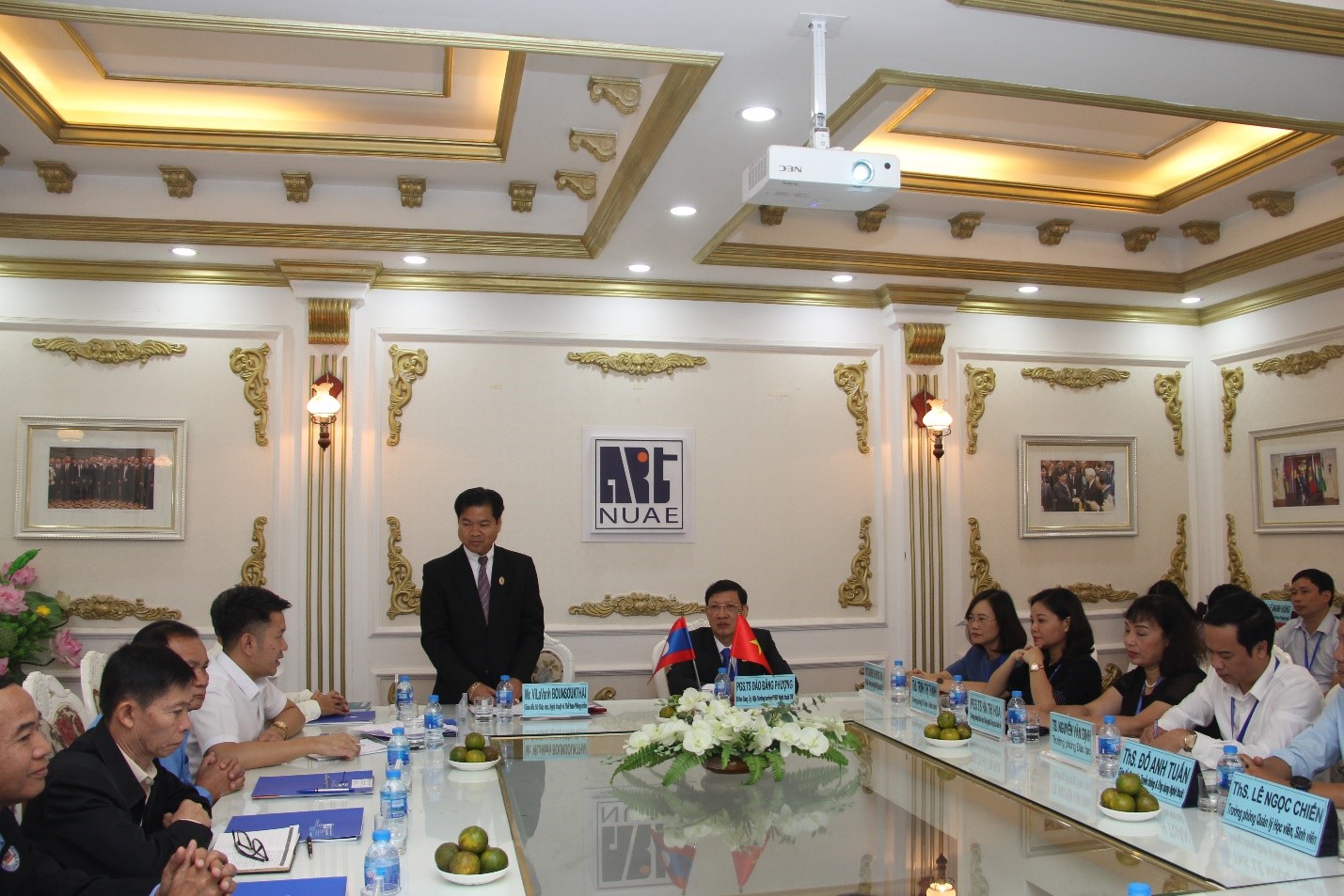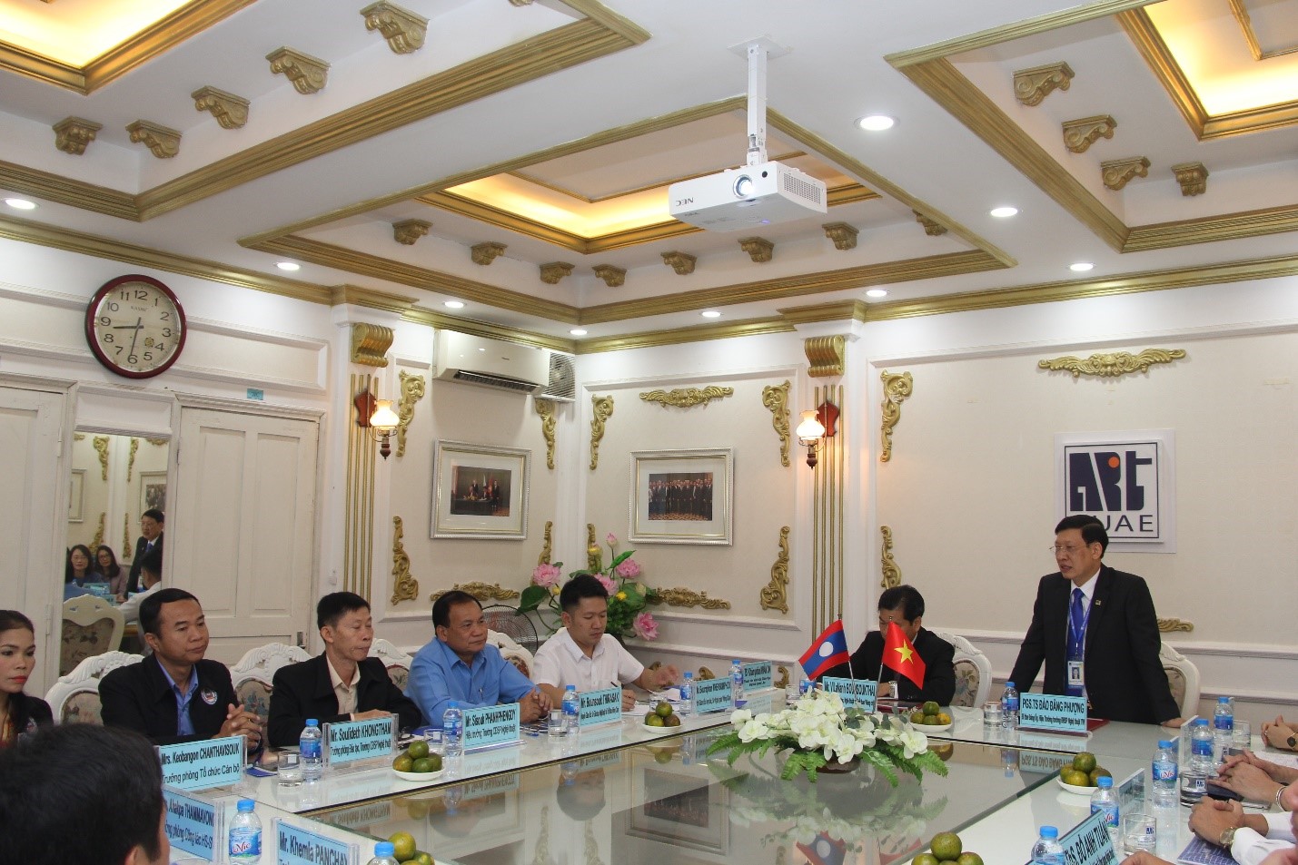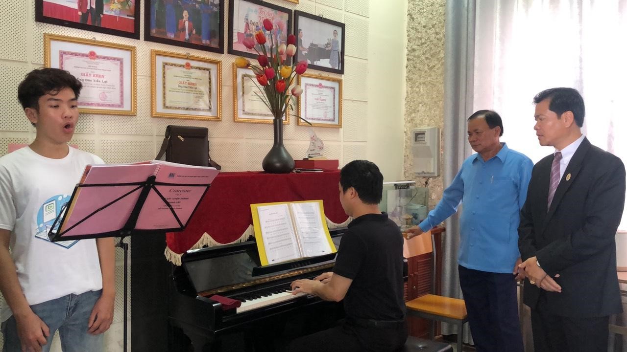 Cùng đi có ông Khăm phăn Khăm On – Tham tán Văn hóa Giáo dục Đại sứ quán Lào tại Việt Nam, ông Bounsouk Thirasak – Nguyên Vụ trưởng Vụ Giáo dục, Nghệ thuật và Thể thao Lào, ông Bouraphan Thepsomphou – Phó Giám đốc hợp tác, Sở Ngoại giao Viêng Chăn, ông Sisouk Phanhphengdy – Quyền Hiệu trưởng Trường CĐSP Nghệ thuật Lào và các lãnh đạo Trường CĐSP Nghệ thuật Lào.