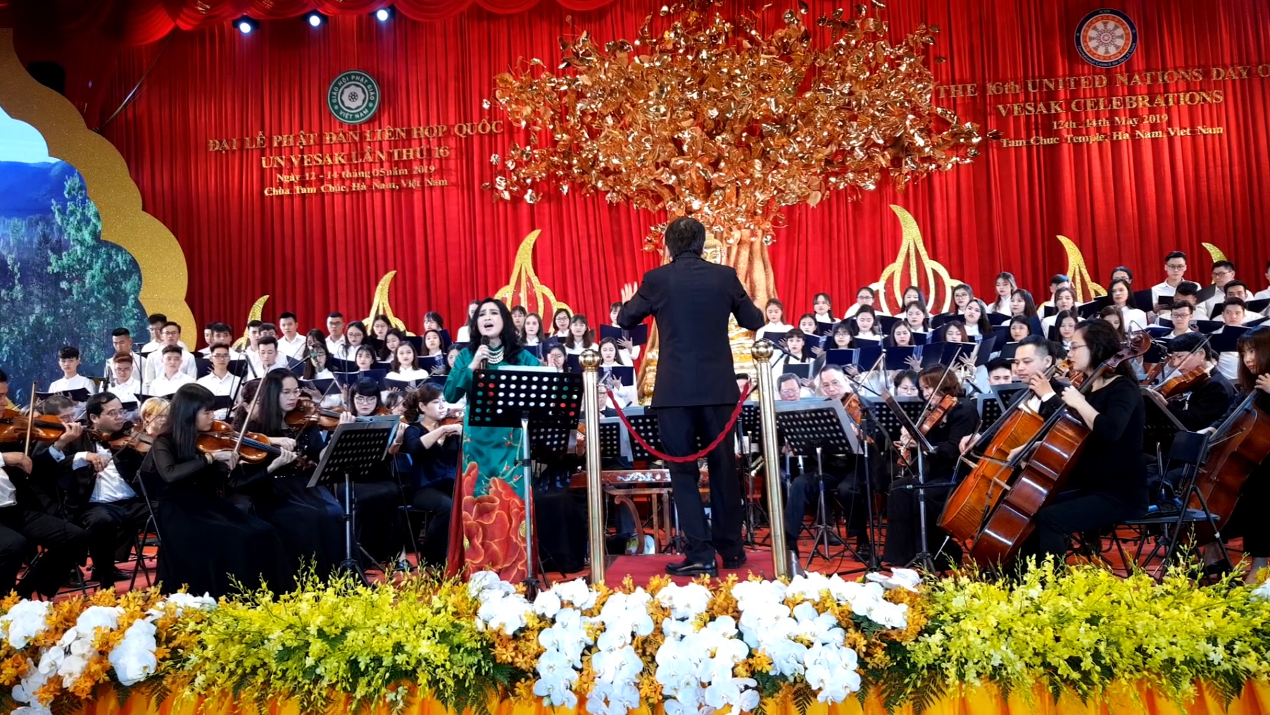 Đội hợp xướng Trường ĐHSP Nghệ thuật TW biểu diễn cùng NSƯT, ca sĩ Thanh Lam, ca sĩ Tùng Dương và NSND Lê Khanh tại Đại Lễ Phật đản Vesak LHQ lần thứ 16