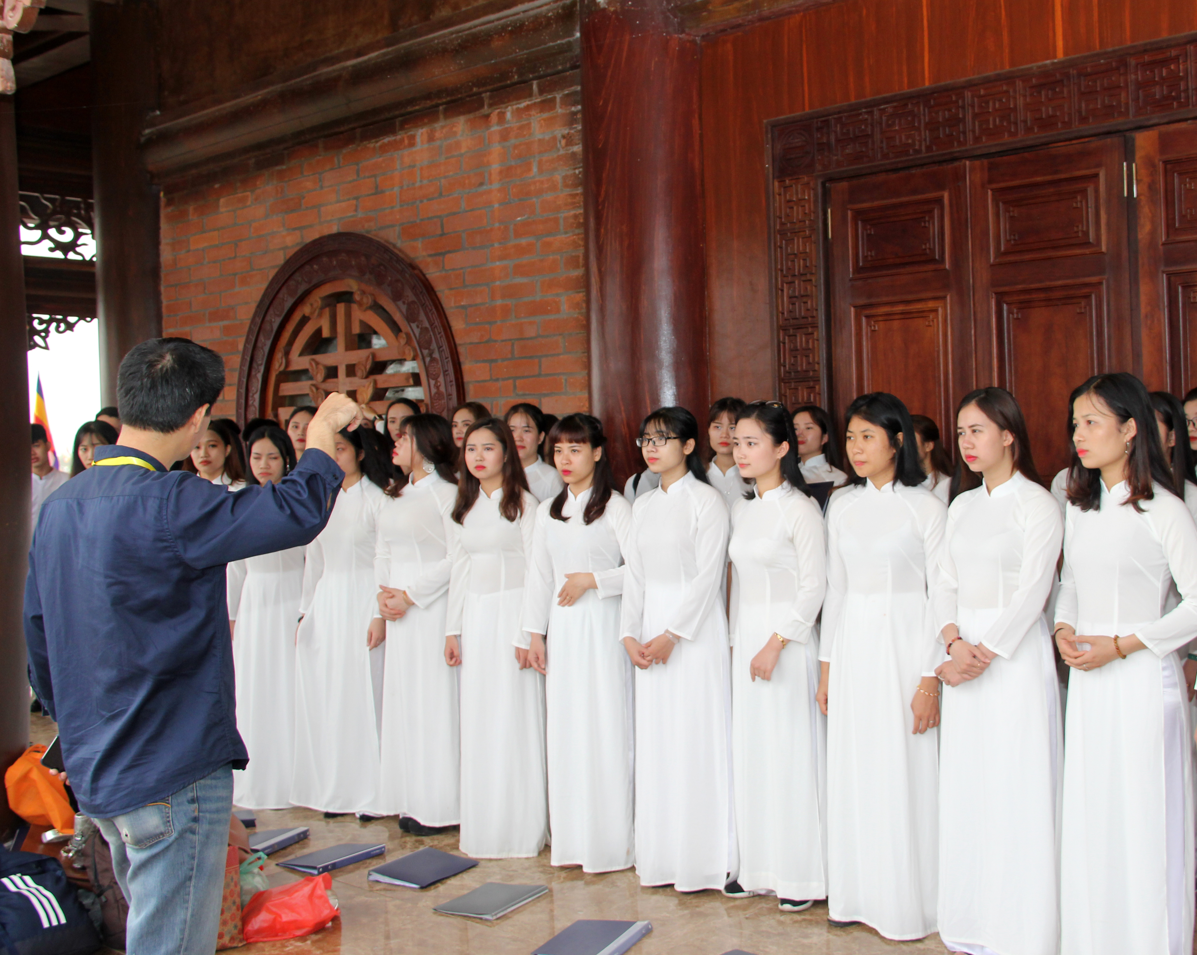 TS. Lê Vinh Hưng – Trưởng khoa Sư phạm Âm nhạc hướng dẫn Đội hợp xướng trước giờ biểu diễn