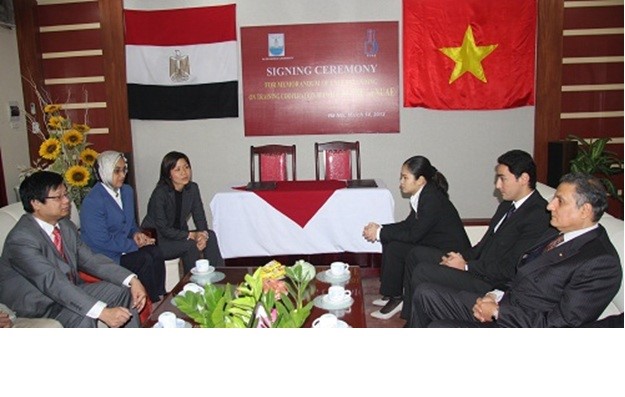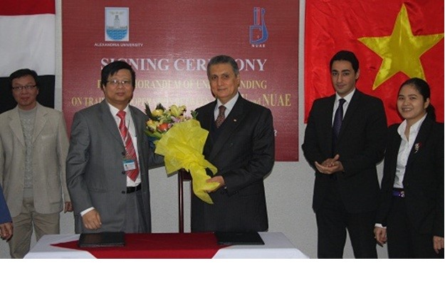 Within the framework of international cooperative programs and activities in education, training and cultural exchange between Vietnam and Egypt, on March 14th, 2012, NUAE (Vietnam) and Alexandria University (Egypt) signed an agreement on cooperation.