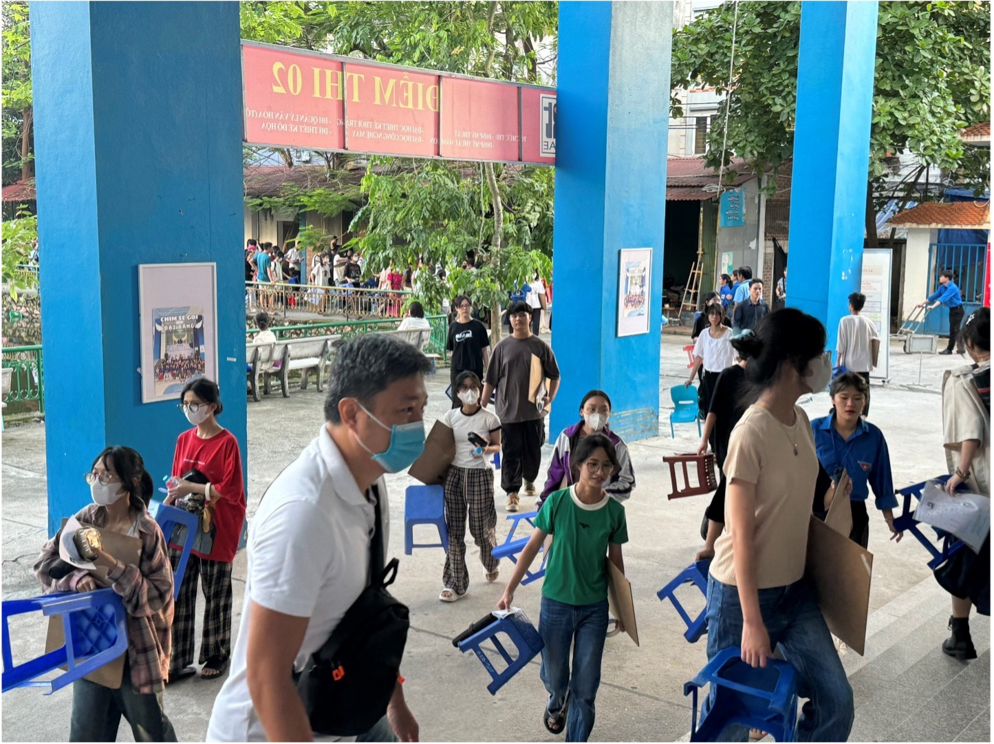 Các thí sinh ngành Mỹ thuật mang theo hàng tá đồ như bảng vẽ, bút màu, ghế,…