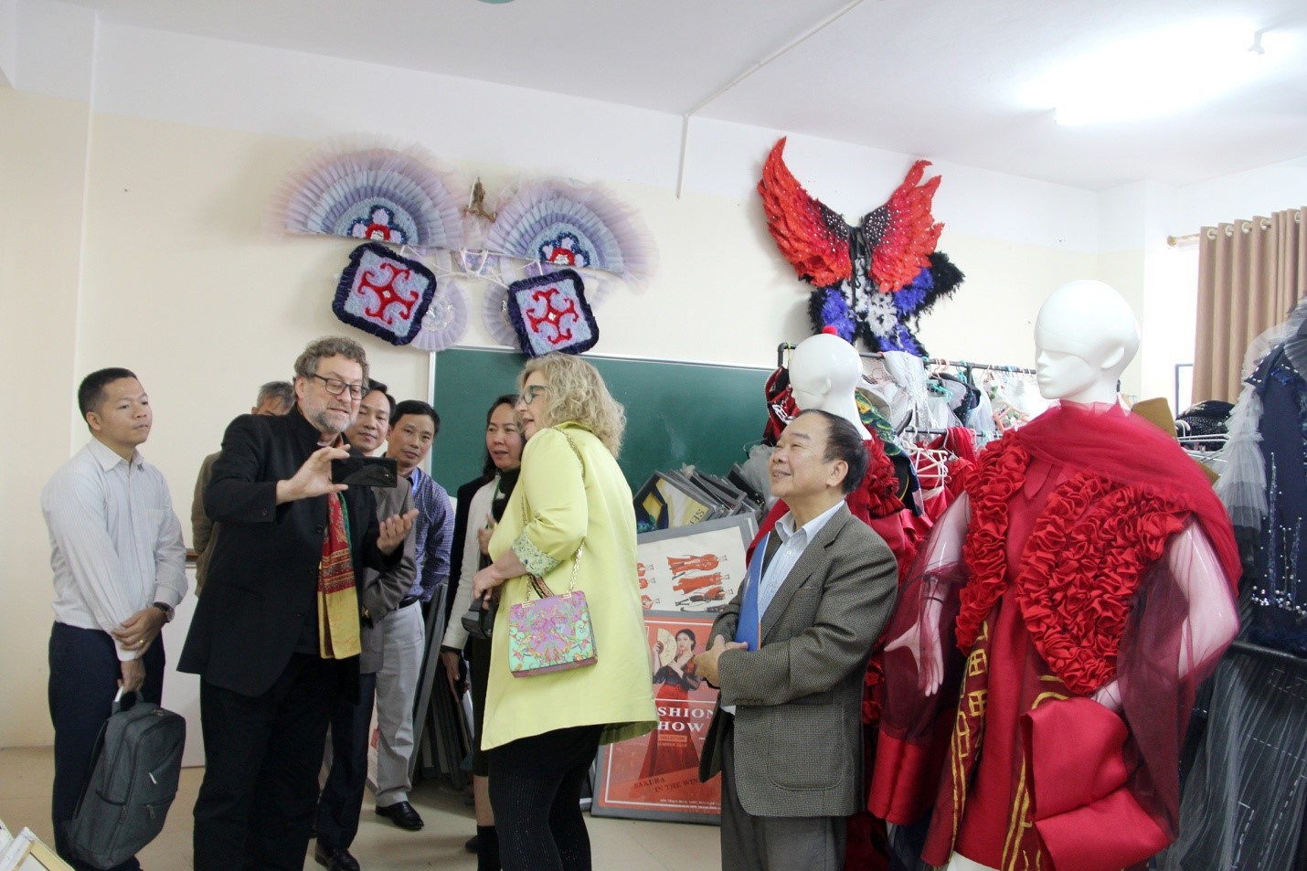 Sau buổi tiếp, đoàn công tác Tập đoàn Lehmbaugruppe – Leipzig tham quan thực tế phòng trưng bày của khoa Thiết kế Thời trang và phòng trưng bày sản phẩm thiết kế của sinh viên khoa Thiết kế Đồ họa.