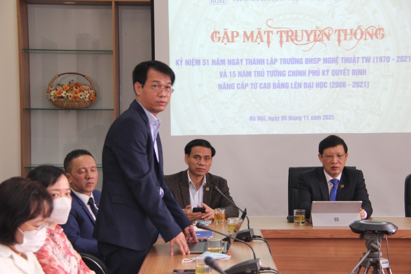 Tại buổi gặp mặt, PGS.TS. Đào Đăng Phượng cũng bày tỏ tin tưởng rằng, tiếp nối truyền thống đáng tự hào được dày công vun đắp qua các thế hệ NUAE sẽ luôn luôn là một khối đoàn kết, thống nhất và vững chắc, để cùng nhau xây dựng Trường ĐHSP Nghệ thuật TW trở thành trung tâm đào tạo nguồn nhân lực chất lượng cao về giáo dục nghệ thuật.