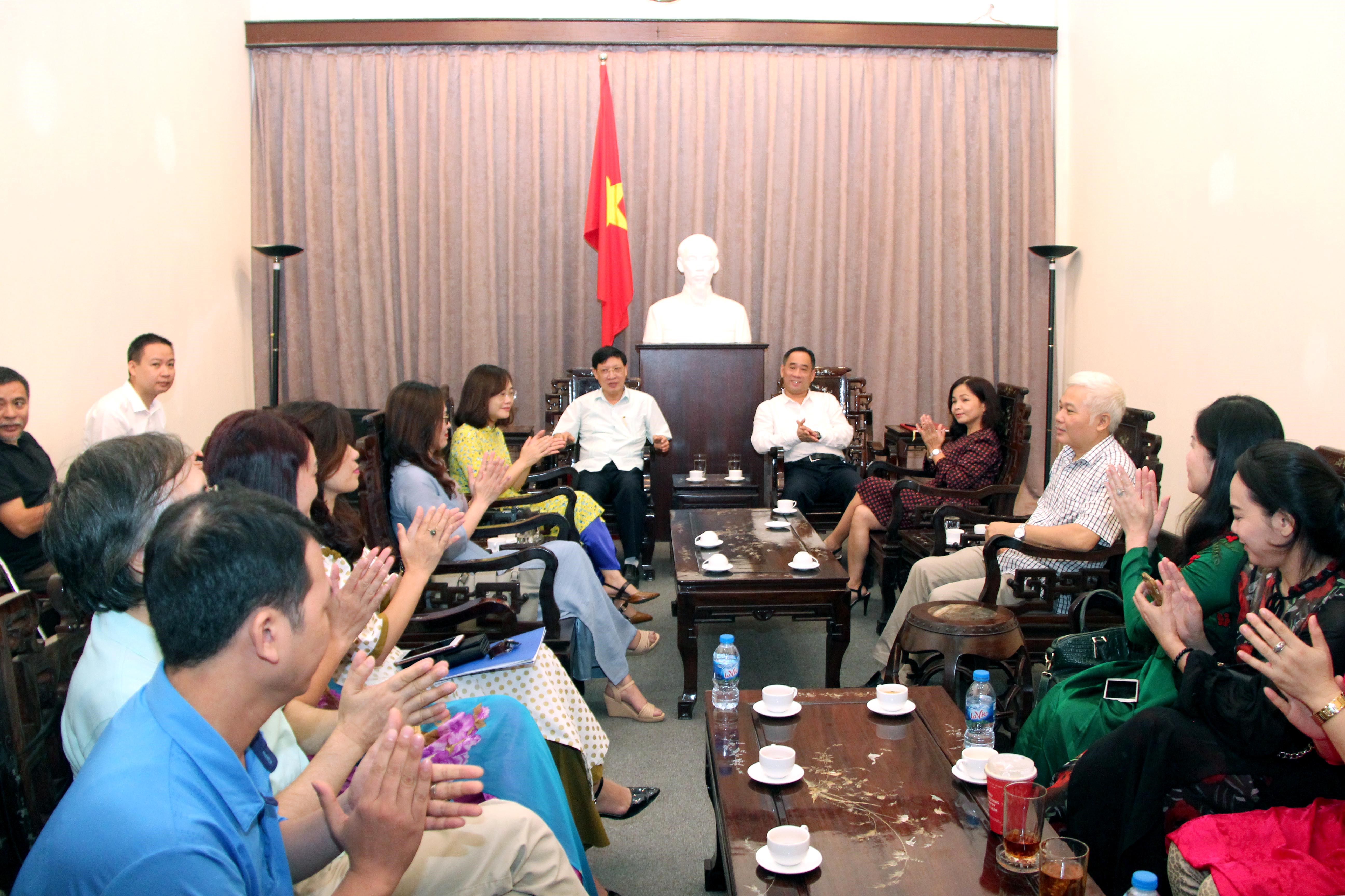 Tại buổi làm việc, PGS.TS. Đào Đăng Phượng đã nêu rõ nội dung hợp tác trên nhiều lĩnh vực đào tạo Nghệ thuật và mong muốn Bảo tàng Mỹ thuật Việt Nam tạo điều kiện cho các lớp thực tế, nâng cao hiểu biết cho sinh viên, học viên nhà trường. Phát biểu tại buổi giao lưu, ông Nguyễn Anh Minh – Giám đốc Bảo tàng Mỹ thuật Việt Nam chia sẻ: “Bảo tàng là nơi lưu giữ rất nhiều những tác phẩm của những danh họa nổi tiếng có giá trị về tinh thần và vật chất. Tuy nhiên, lượng khách tham quan đến với Bảo tàng còn khiêm tốn, mặc dù đây là điểm tham quan uy tín và hấp dẫn với du khách Quốc tế. Ngoài ra, Bảo tàng cũng là trường học thực tiễn, sinh động với các bộ môn chuyên ngành và tạo nên sức hấp dẫn với công chúng, khách tham quan đến với Bảo tàng nhằm phát huy giá trị Mỹ thuật Quốc gia. Vì vậy, Bảo tàng cần tăng cường lượng khách trong nước là học sinh và sinh viên nói chung và đặc biệt là đối với sinh viên trường nghệ thuật nói riêng”.