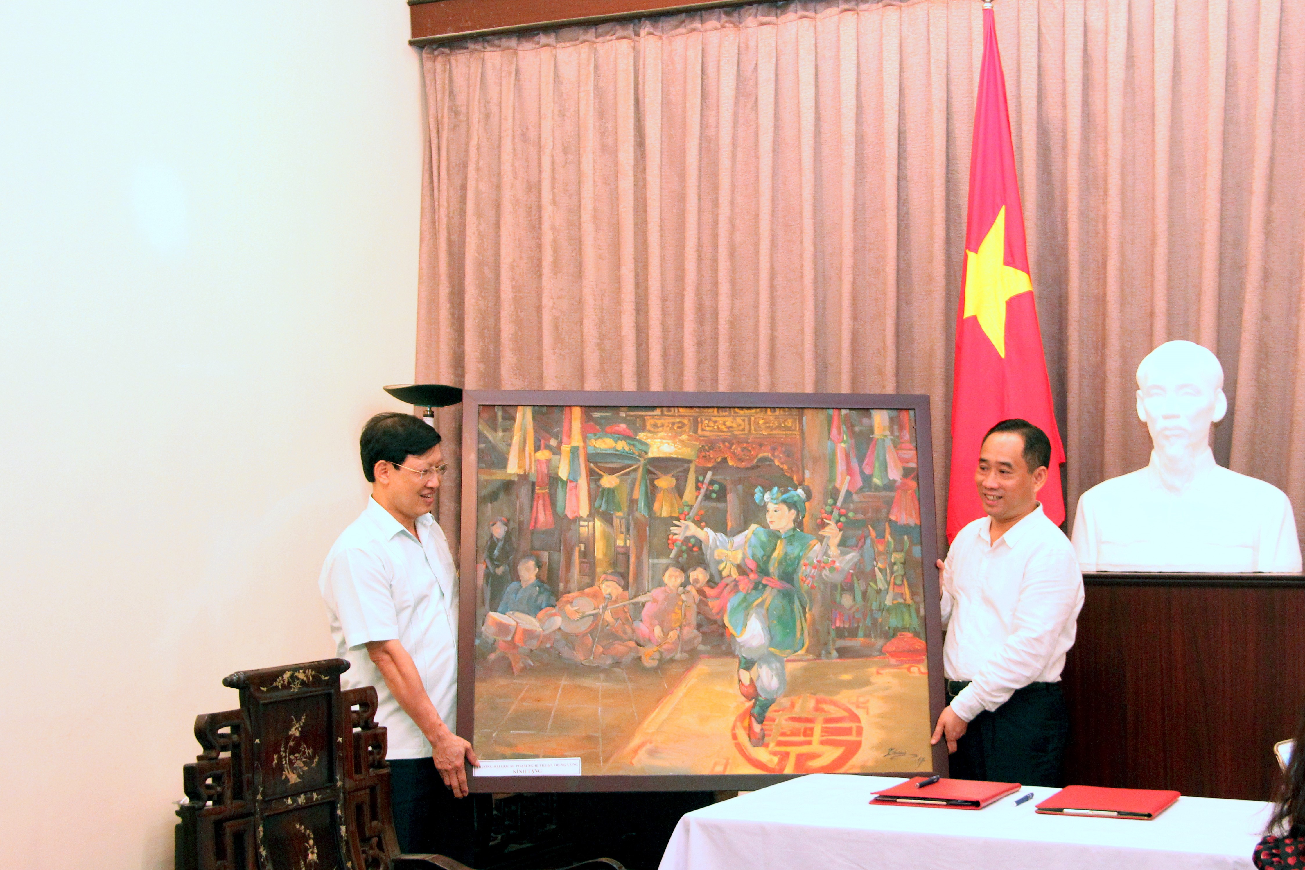 tặng quà lưu niệm cho PGS.TS. Đào Đăng Phượng, Hiệu trưởng Trường ĐHSP Nghệ thuật Trung ương