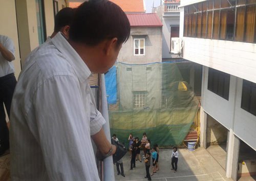| Rung chấn ở tòa nhà báo Quảng Ninh, mọi người chạy ra sân – Ảnh: Minh Nguyệt |