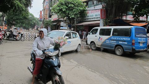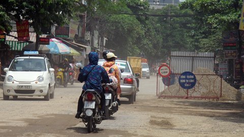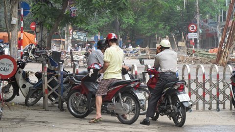 Chị Lý phải loay hoay mãi mất gần 1 giờ đồng hồ mới quay đầu xe được vì cũng như chị, nhiều người không biết đường bị ngăn nên cứ lao thẳng xe vào đường Thái Thịnh, gây nên cảnh ùn tắc.