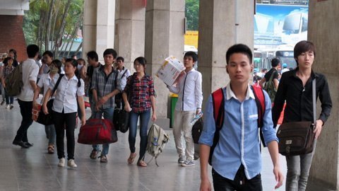 | Lượng hành khách tại bến xe chiều 27/4 chủ yếu là học sinh, sinh viên về quê |