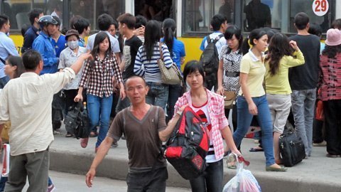 Trên đường Nguyễn Văn Cừ (Long Biên-Hà Nội), sinh viên và lao động ngoại tỉnh xếp kín dọc đường đợi bắt xe khách. Những tuyến xe buýt về các tỉnh lân cận như Bắc Ninh, Bắc Giang, Hải Dương, Hưng Yên… đông ngẹt khách.