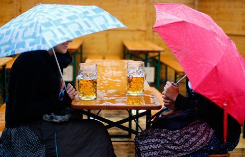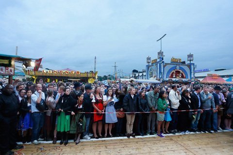 Trong ngày khai mạc, thời tiết đổ mưa nhưng vẫn có hàng trăm người đứng xếp hàng chờ đến lượt để vào tham dự lễ hội và thưởng thức những cốc bia truyền thống. Hình ảnh hai phụ nữ cầm ô ngồi uống bia hay những nữ phục vụ ôm theo cả chục vại bia to đùng lao vun vút trong đám đông đã tạo nên những nét vô cùng thú vị chỉ riêng có ở Oktoberfest.