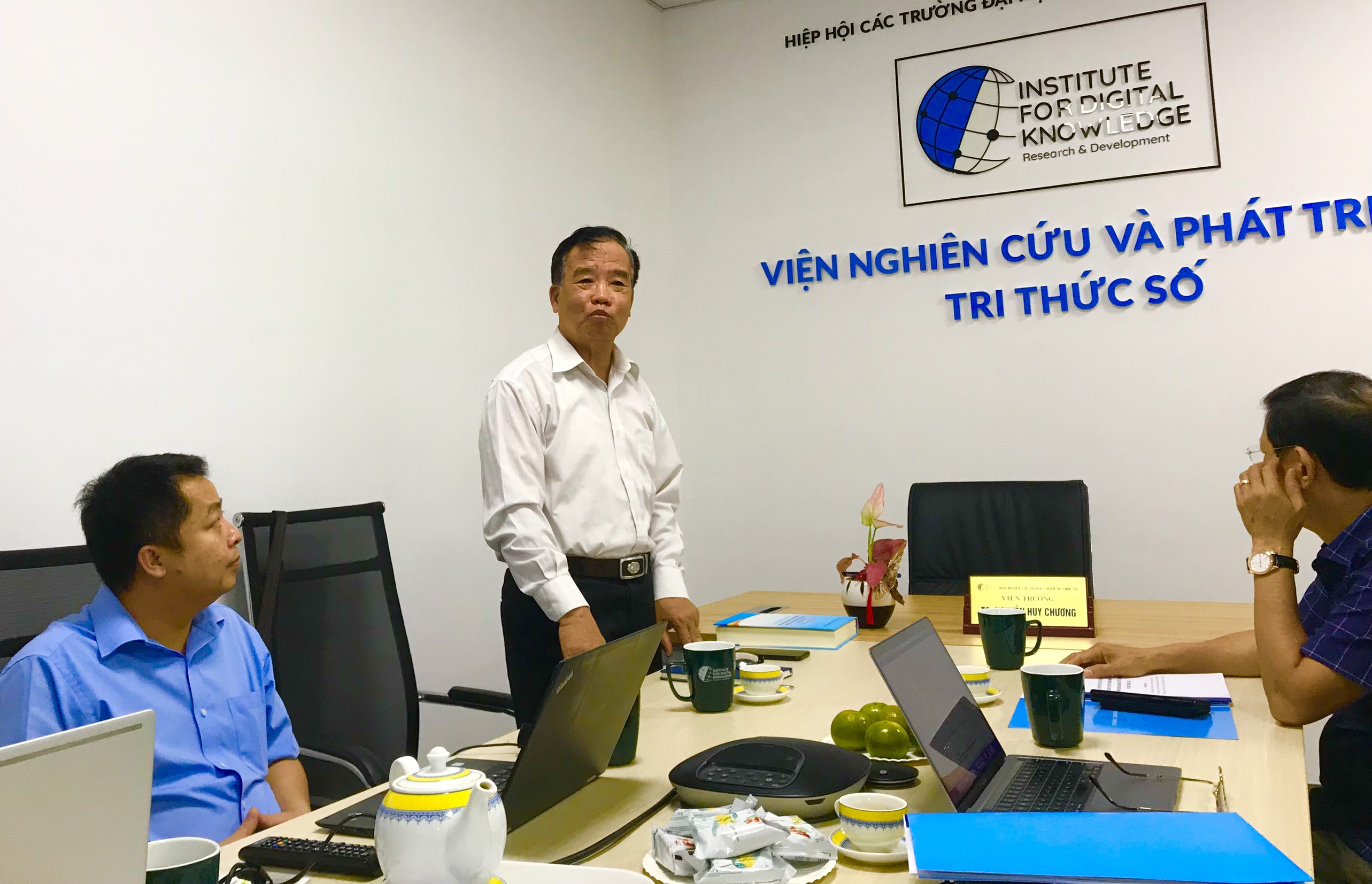 Lãnh đạo NUAE tham quan nơi làm việc của Viện nghiên cứu và Phát triển Tri Thức số