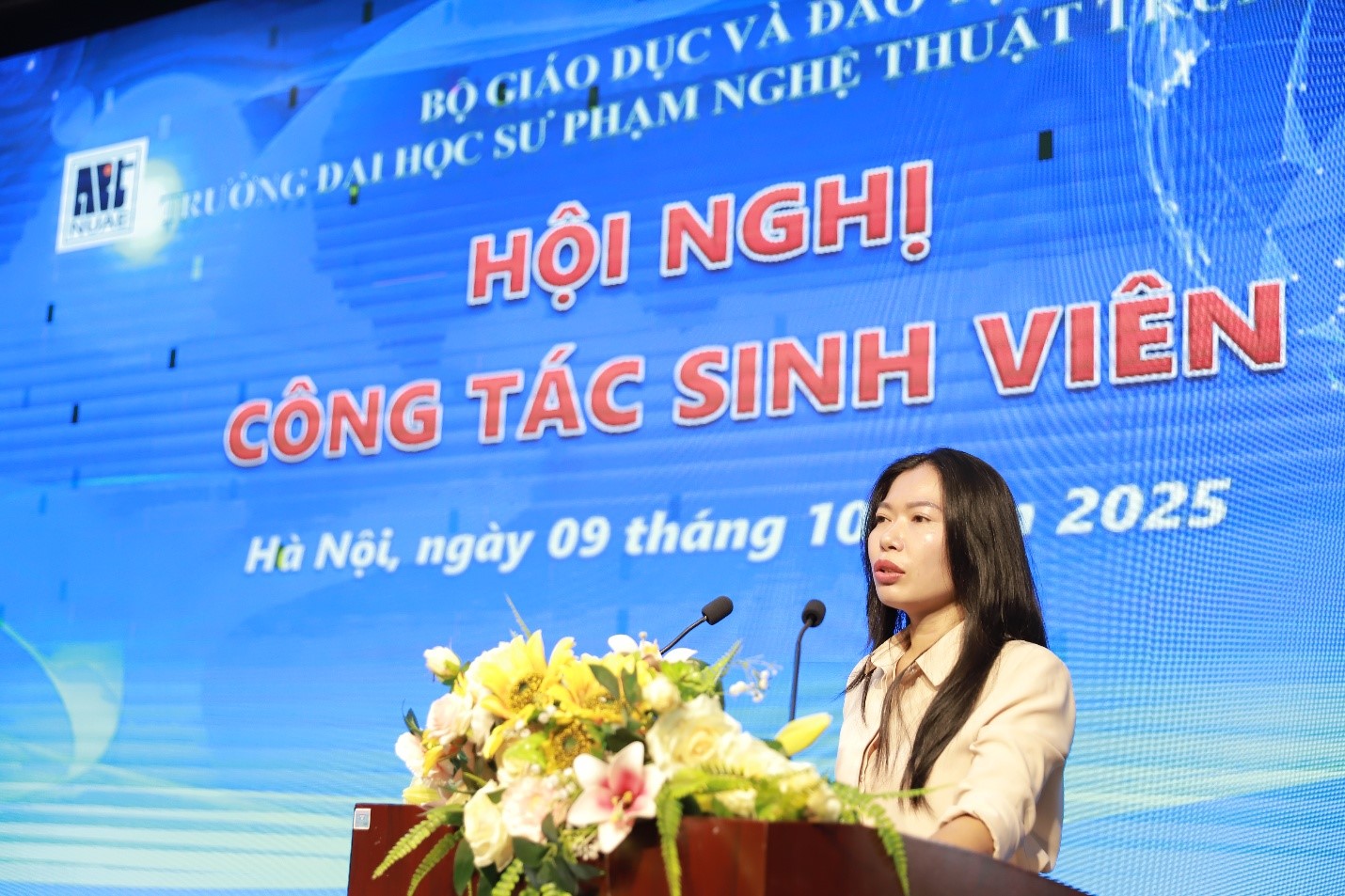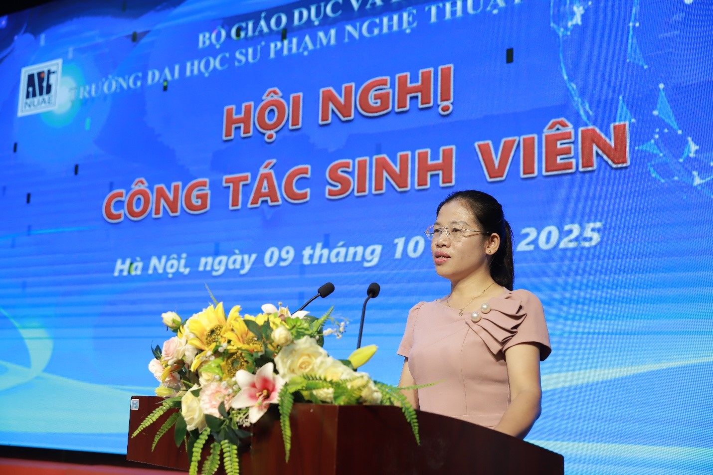 Phát biểu trong Hội nghị Giao ban công tác sinh viên, ThS. Nguyễn Thị Ngọc Tú – Trưởng phòng Quản lý Học viên, Sinh viên nhấn mạnh đây là hoạt động thường niên của Nhà trường nhằm mục đích tổng kết các hoạt động trong công tác sinh viên Nhà trường hàng tháng đồng thời triển khai các nhiệm vụ công tác sinh viên thời gian tiếp theo tới sinh viên thông qua Ban cán sự các lớp. Năm học 2024 – 2025, công tác quản lý học viên – sinh viên tại Trường ĐHSP Nghệ thuật TW đã đạt nhiều kết quả nổi bật. Sinh viên cơ bản chấp hành tốt các chủ trương, chính sách của Nhà nước và quy định của Nhà trường, tích cực học tập, rèn luyện, tham gia nghiên cứu khoa học, khởi nghiệp, các hoạt động văn hóa – văn nghệ – thể thao và phong trào thanh niên xung kích.